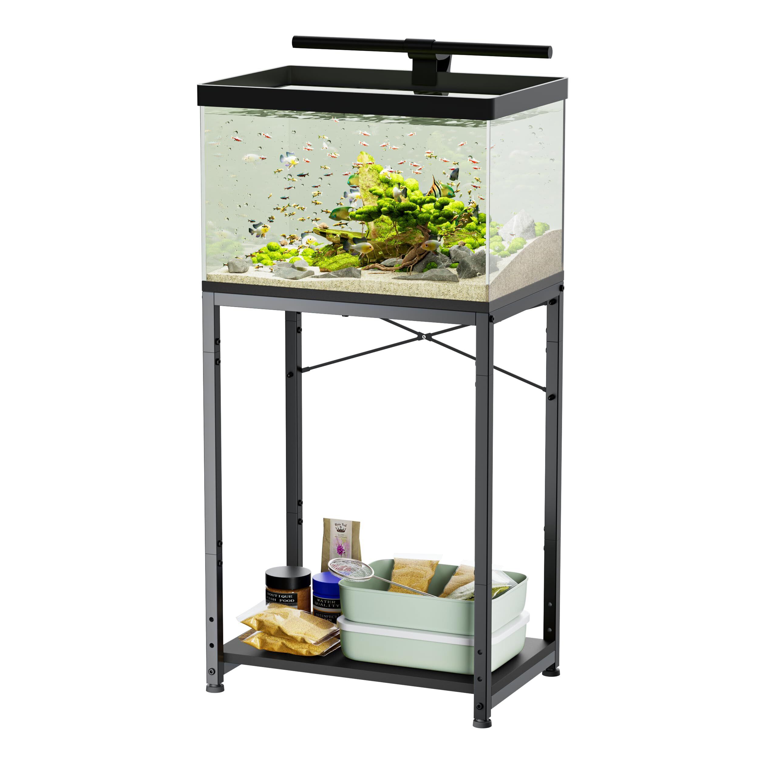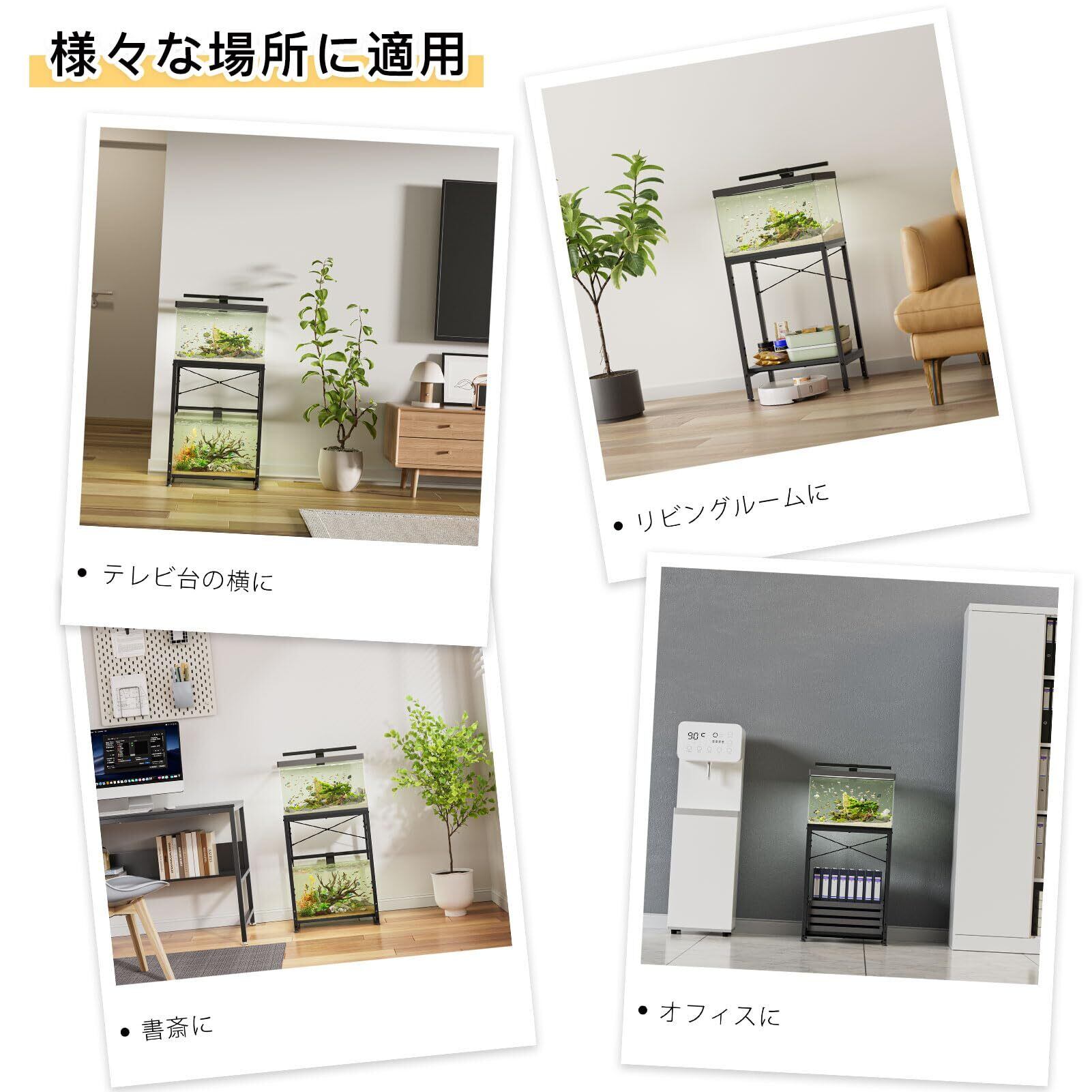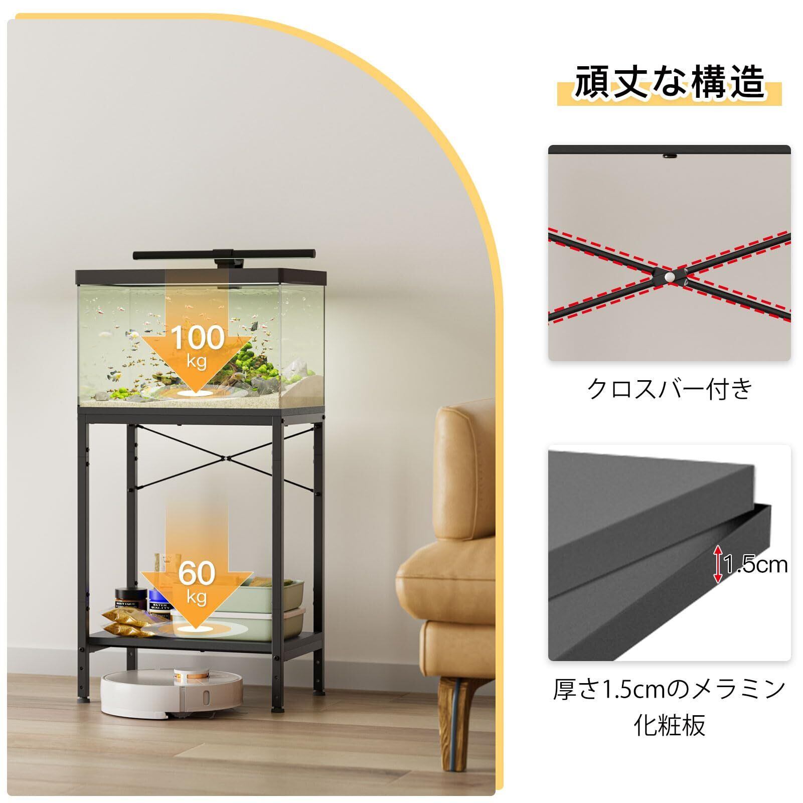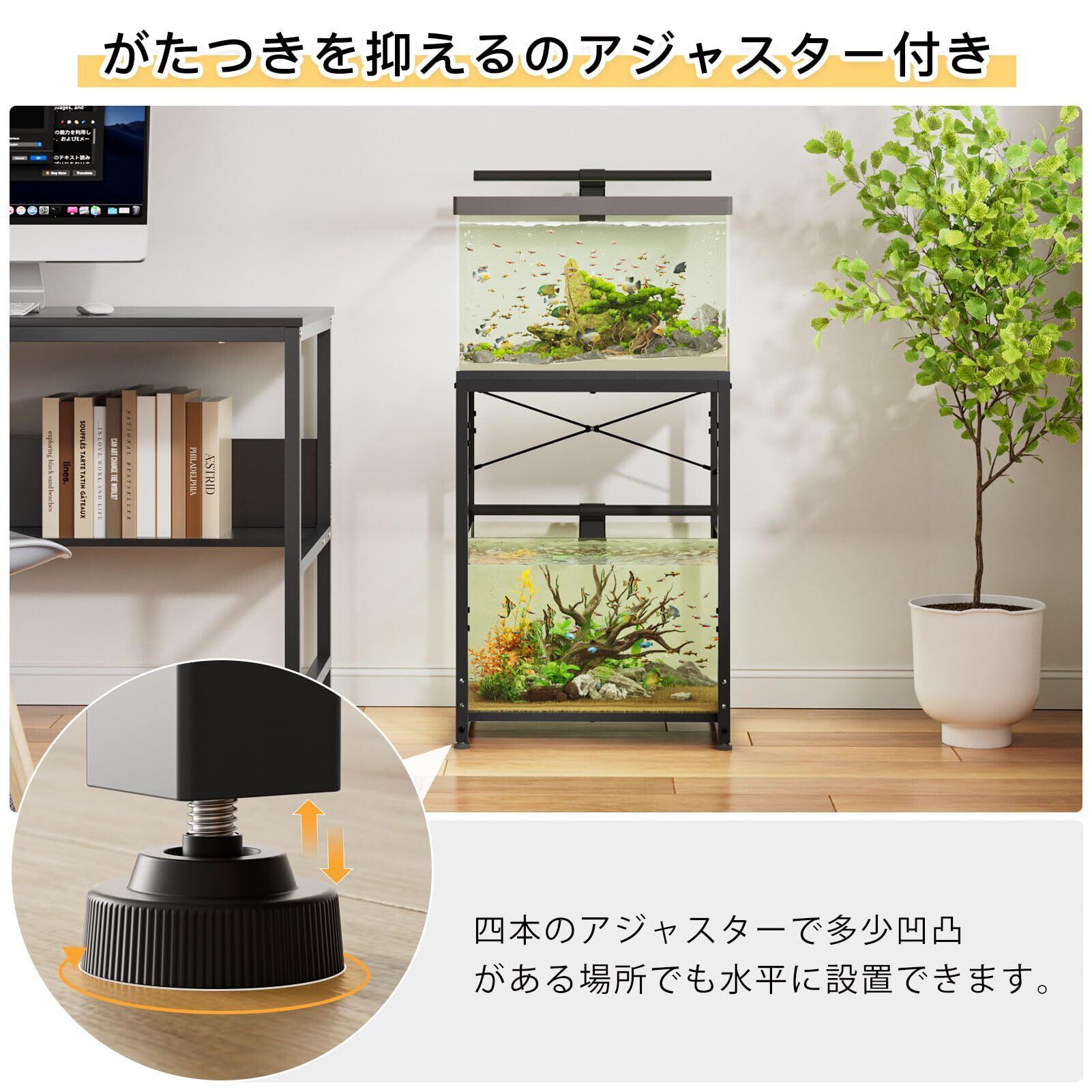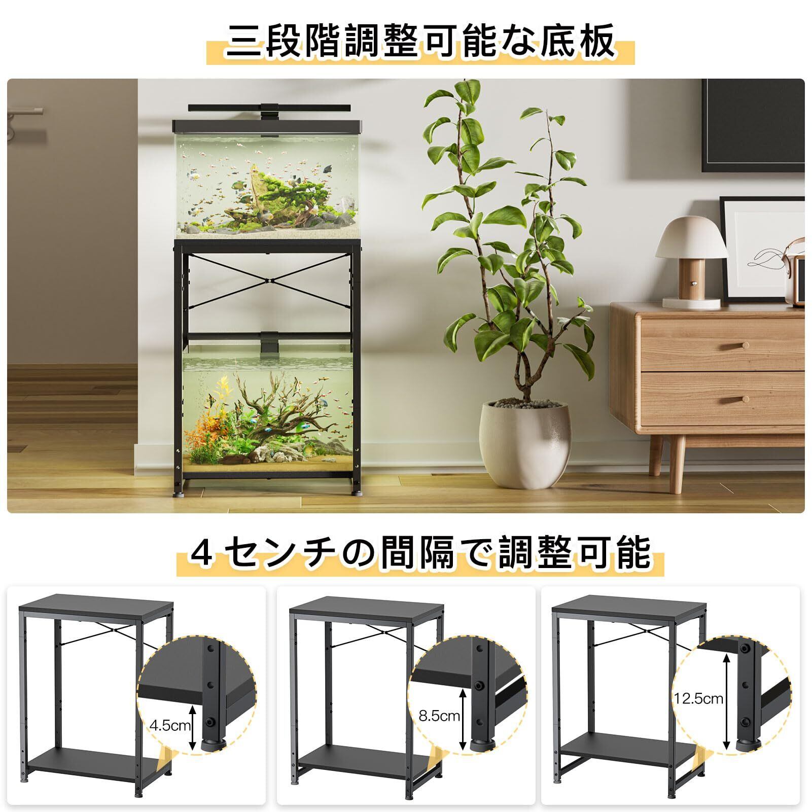 【底板の高さ調整可能】水槽設置台の底板が可動で、収納する物品のサイズに合わせて棚板の高さは三段階で調節可能です。水槽、魚の餌、漁網、水槽ブラシ、水槽ライト、ポットなどを棚板に自由に置くことができます。