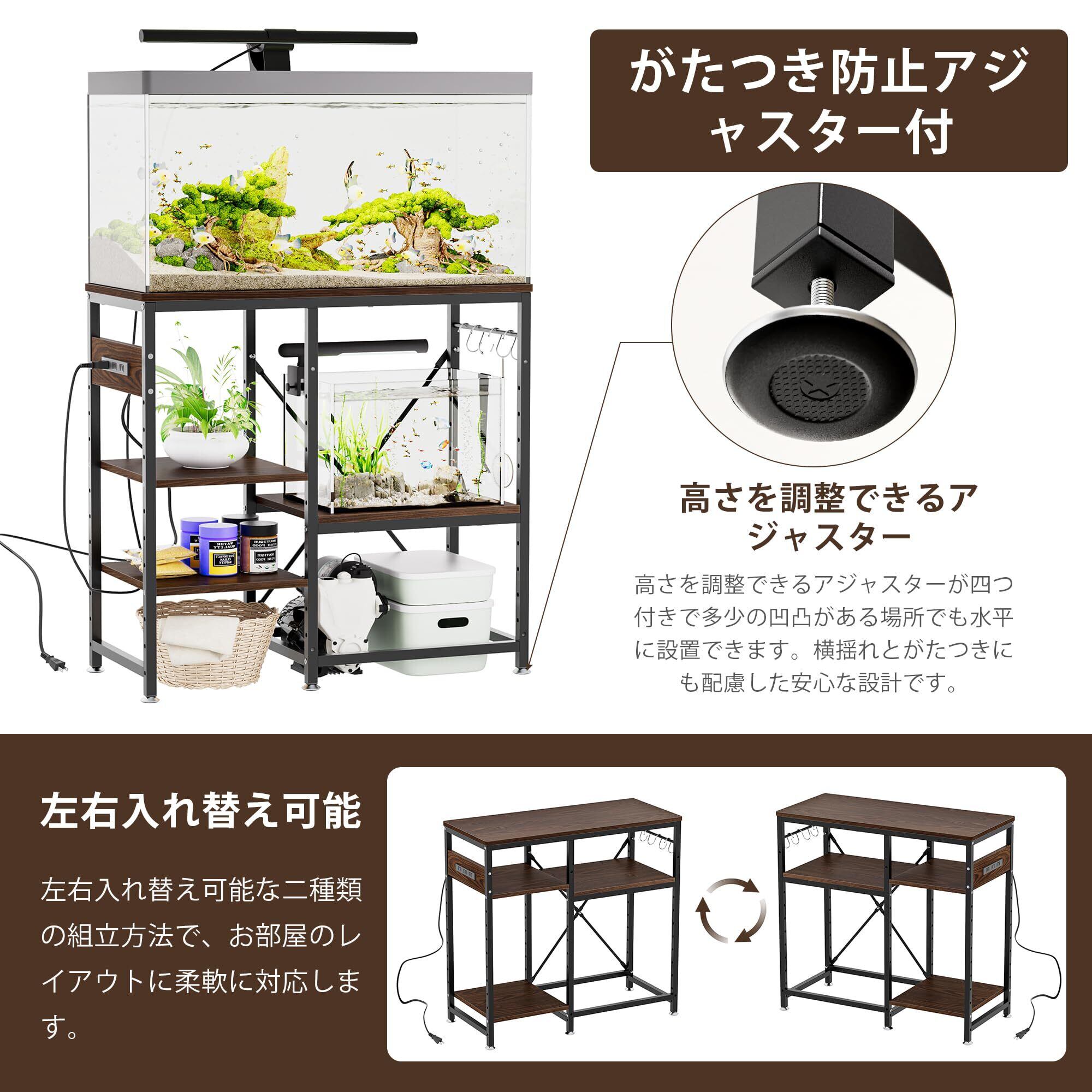 【コンセント付き】コンセント付きの水槽ラックなので、水槽ライト、魚用自動給餌器やエアーポンプなどの使用にとても便利です!他のケーブルに接続しなくてラックの清潔感を保つことができます。