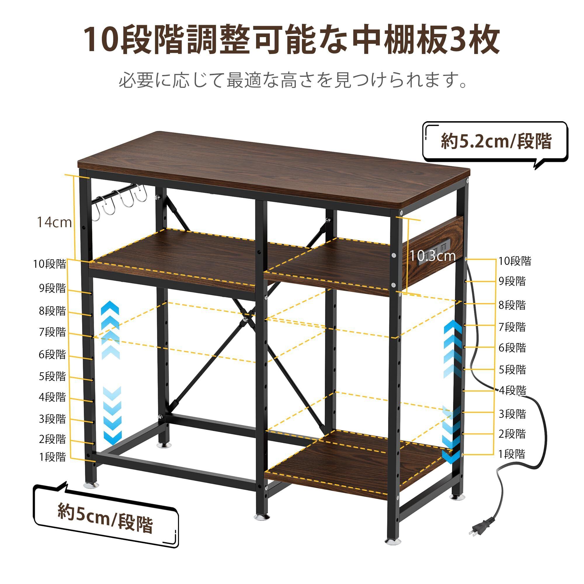 DEWEL 水槽台 幅79×奥行35×高さ75cm 水槽 台 ラック 棚 スタンド 中棚板高さ10段階調整可能 フック/コンセント付 水槽棚 面取り加工 総耐荷重約215kg 水槽ラック 60cm水槽用 アジャスター付 水槽スタンド 水槽置き台 水槽設置台 (ウォールナット, 幅79×奥行35×高さ75cm)