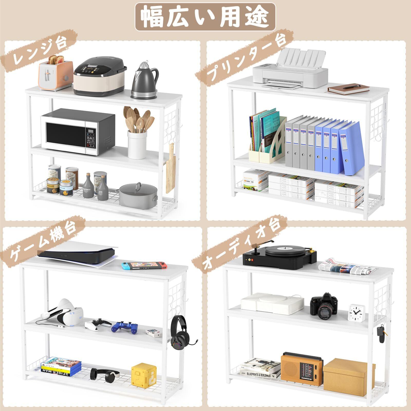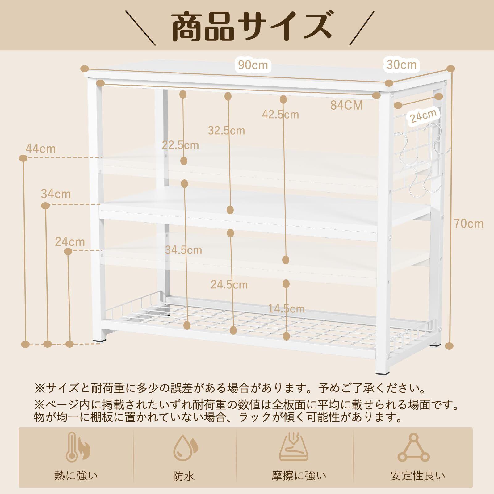 【製品仕様】◆サイズ:幅90cm 奥行30cm 高さ70cm。◆製品重量:11.9kg。◆耐荷重:総耐荷重約155kg(天板:100kg、中棚板:50kg、下棚板:5kg)。◆材質:パーティクルボード/メラミン化粧板/金属フレーム/スチール/粉体塗装。