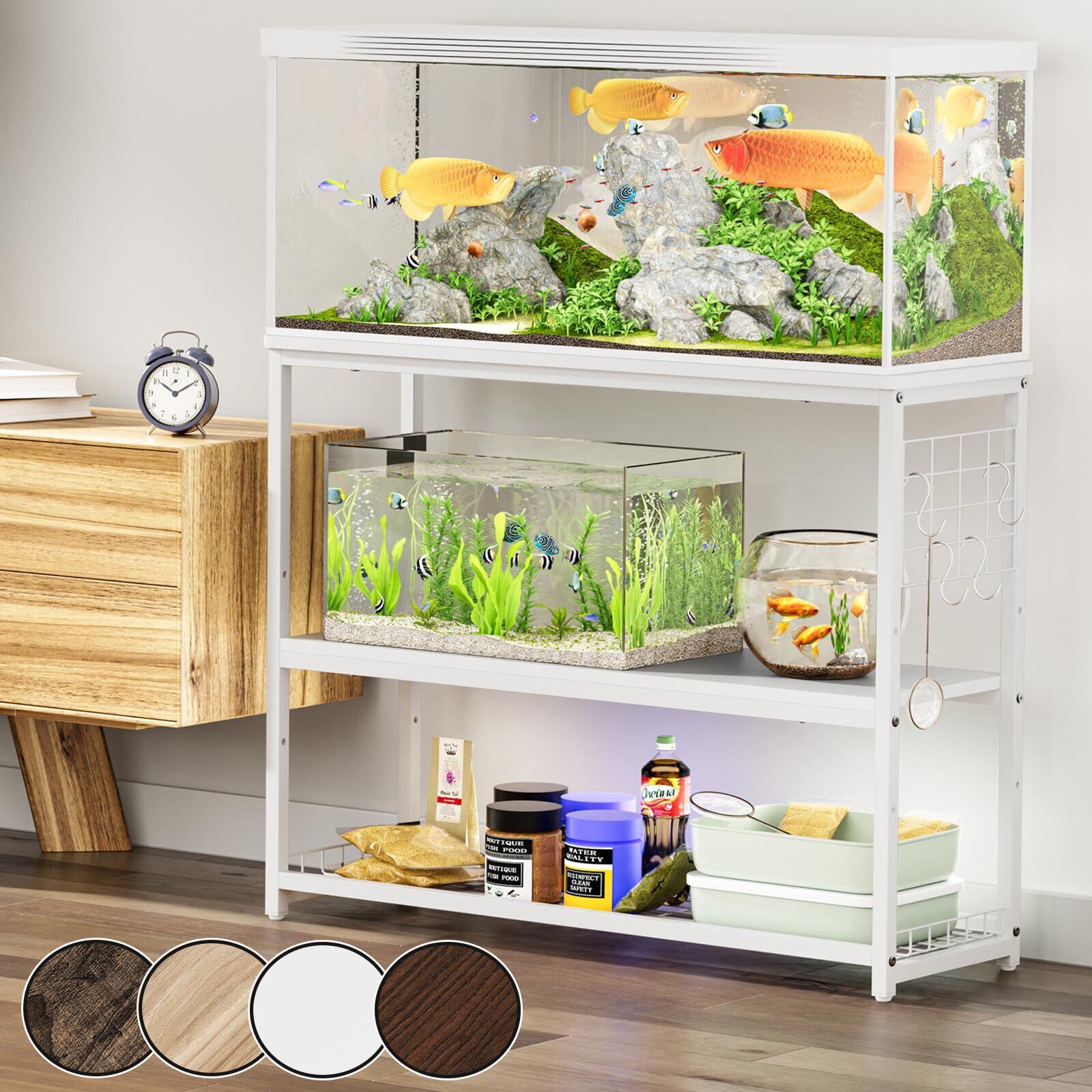 DEWEL 水槽台 90cm水槽用 水槽 台 ラック 棚 スタンド 高さ三段階調整可能 水槽棚 総耐荷重約155kg 面取り加工 水槽ラック フック/アジャスター付 3段 水槽スタンド 水槽置き台 水槽設置台 幅90 奥行き30 高さ70cm 木製