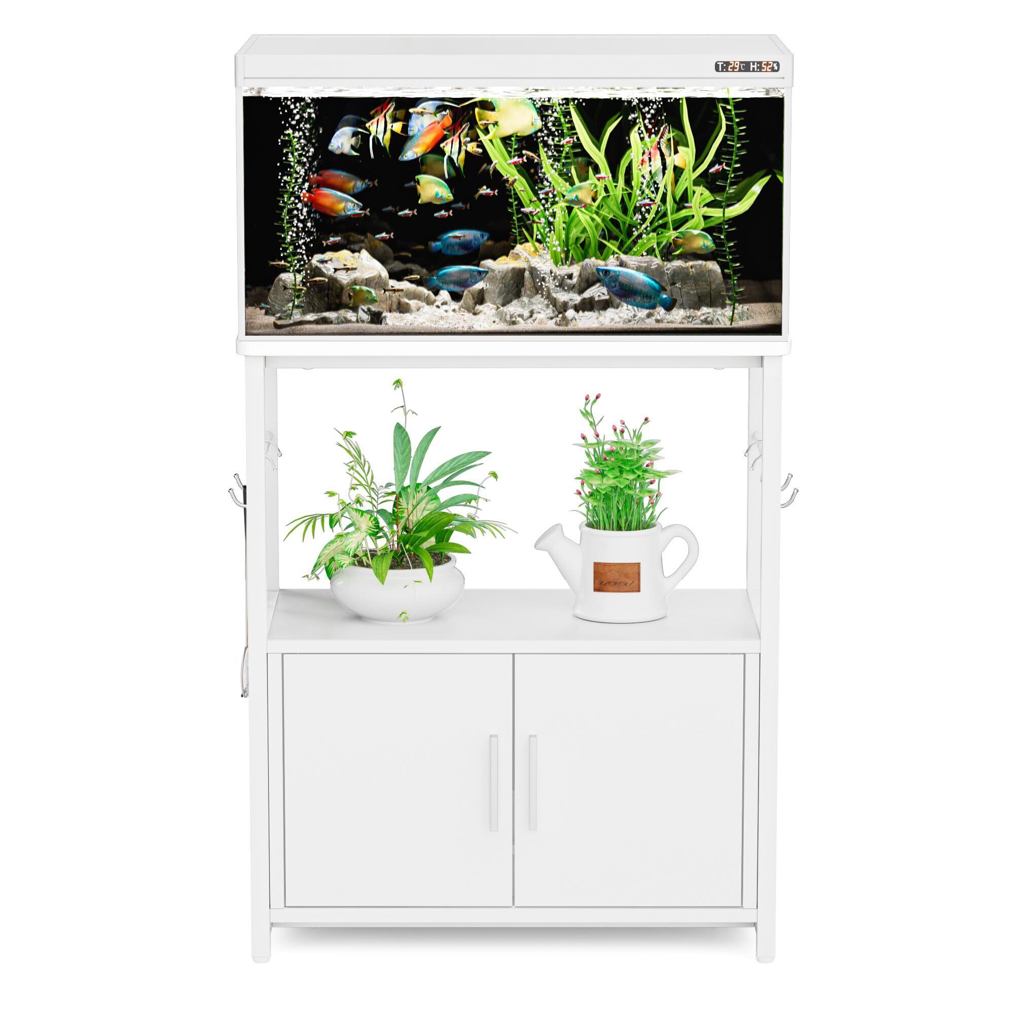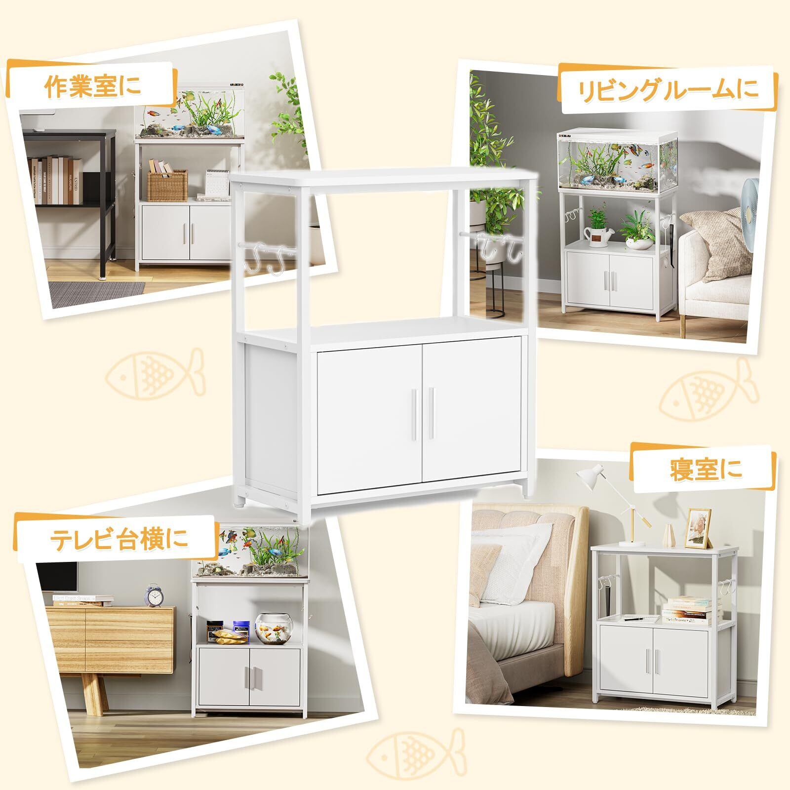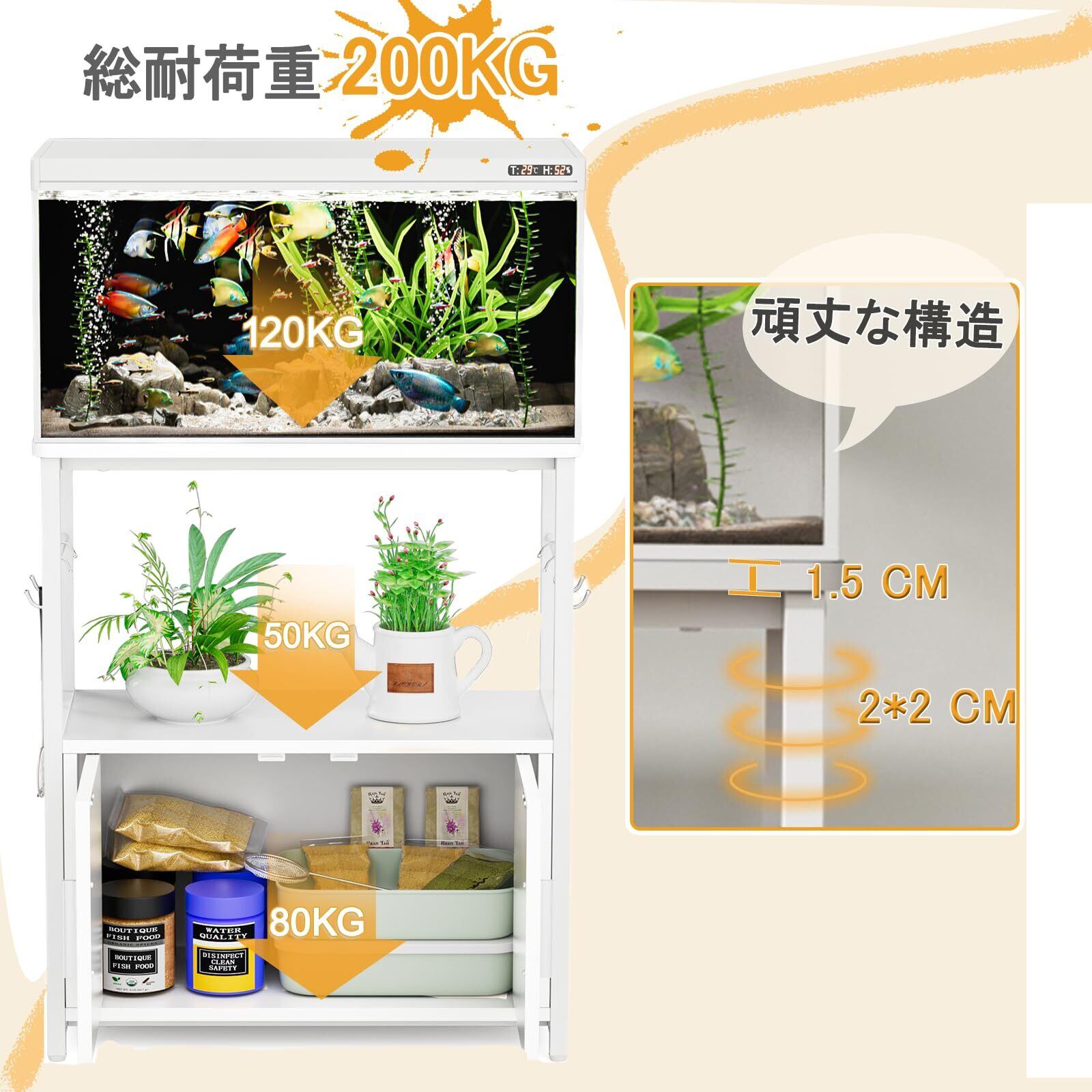 DEWEL 水槽台 60cm水槽用 水槽棚 60cm 台 幅60×奥行き30cm水槽用 キャビネット付き 総耐荷重約200kg 白 水槽 台 水槽設置台 水槽スタンド 水槽台 低い 60センチ水槽台 水槽置台 高さ70cm 頑丈 水槽 ラック 45cm水槽用 アジャスター/フック付き (ホワイト)