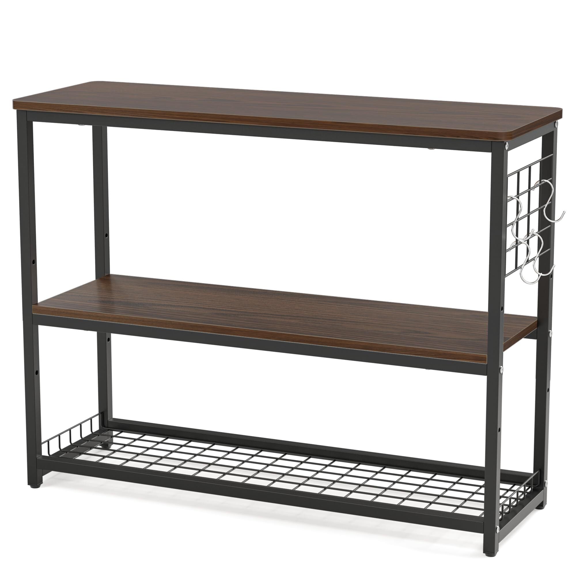 DEWEL 水槽台 幅90cm 水槽スタンド 90cm水槽用 三段式 中棚板高さ調整 水槽棚 総耐荷重約155kg フック付き アジャスター付き 面取り加工 頑丈 錆びにくい 水槽棚 水槽台 水槽置き台 幅90cm×奥行き30cm×高さ70cm 木製 (ウォールナット)