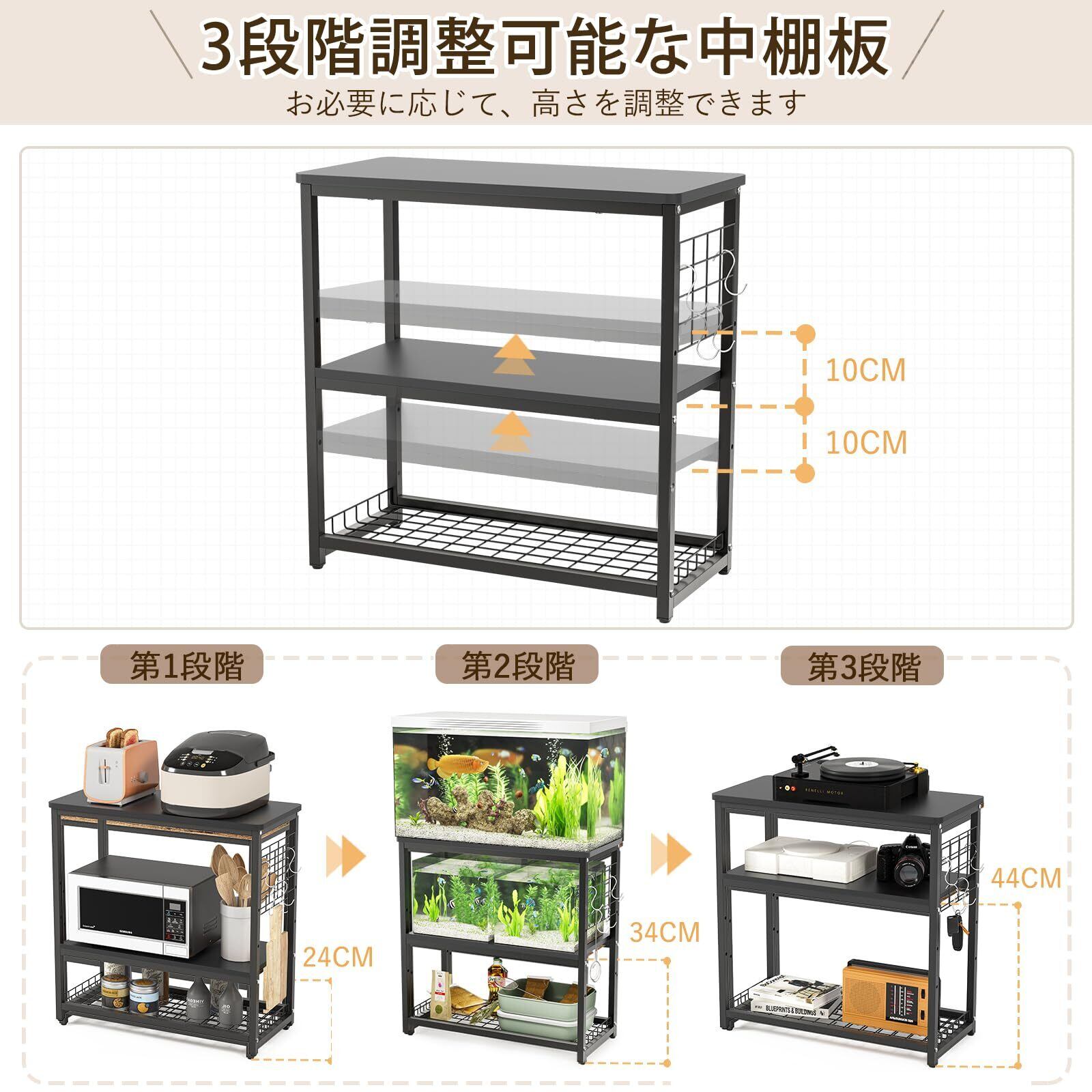 【高さ3段階調整可能な中棚】水槽スタンドの中棚の高さが3段階調節できて、用途に合わせて適当な高さを調整できます。
