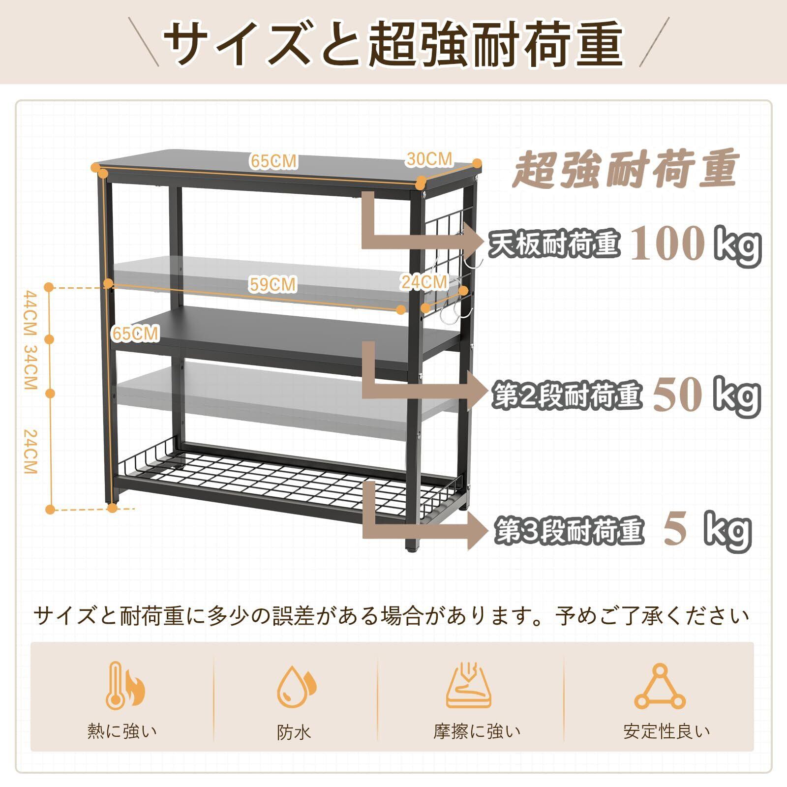 【商品仕様】 サイズ:約幅65×奥行30×高さ65cm(アジャスター付) 材質:パーティクルボード/メラミン化粧板、フレーム/スチール(粉体塗装) 耐荷重:天板約100kg、中棚約50kg 、下段ラック5kg。