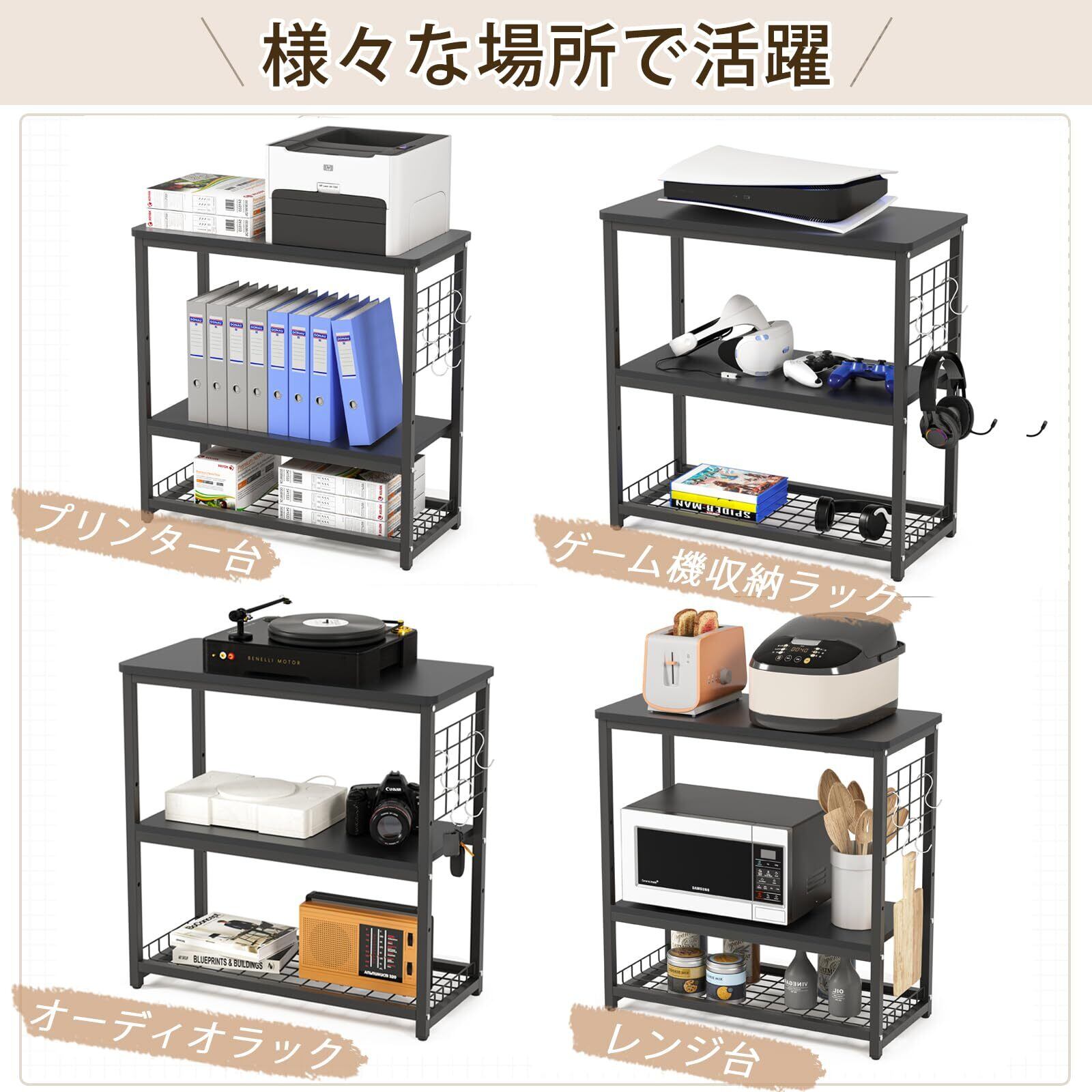 DEWEL 水槽台 水槽スタンド 幅65×奥行30×高さ65cm 中棚板高さ三段階調整可能 総耐荷重約150kg 頑丈 水槽棚 3段 フック付き 組立式水槽台 アジャスター付き 木製 ウッドデコスタンド ラック 棚 収納 水槽設置台 水槽置き台 おしゃれ (ブラック)