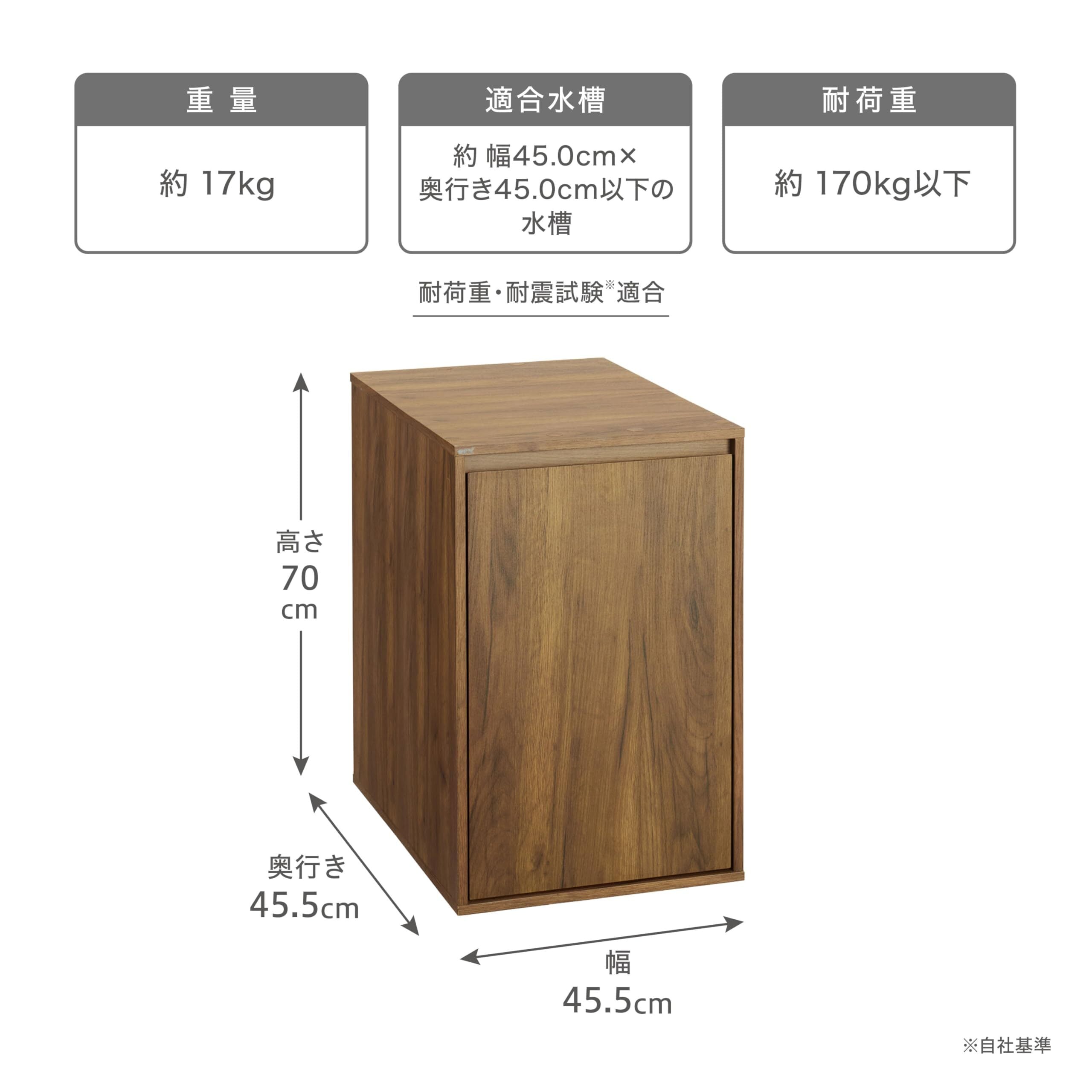 【商品仕様】 ●組立時サイズ:約幅45.5×奥行45.5×高さ70cm、●耐荷重:170kg、材質:木質ボード、●適合水槽:幅45×奥行45cm以下、●組立式