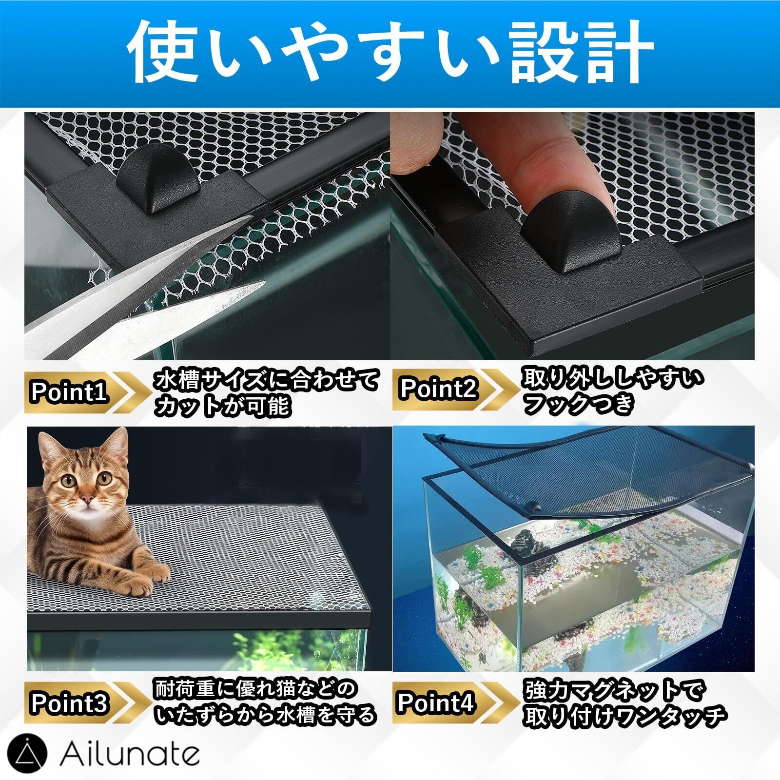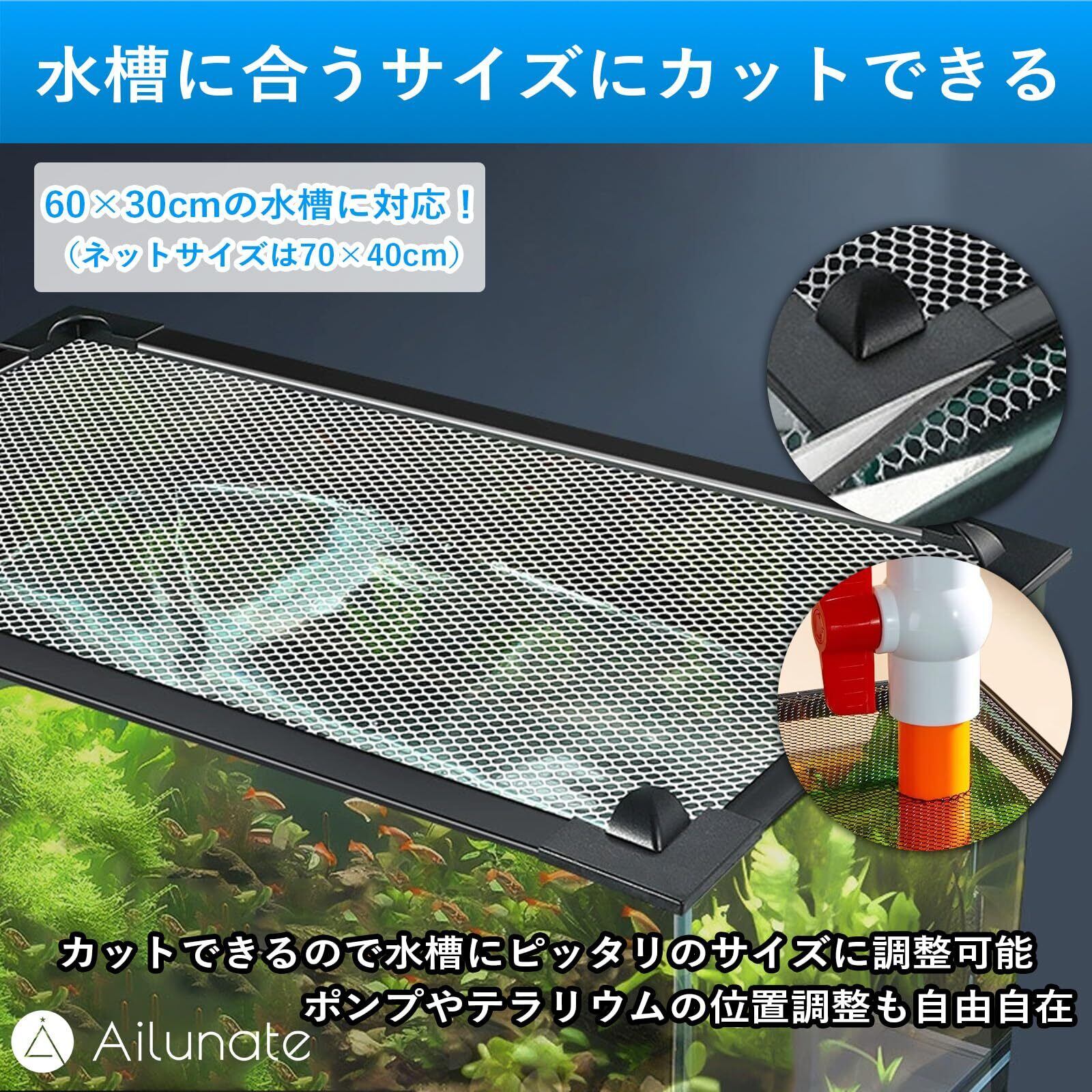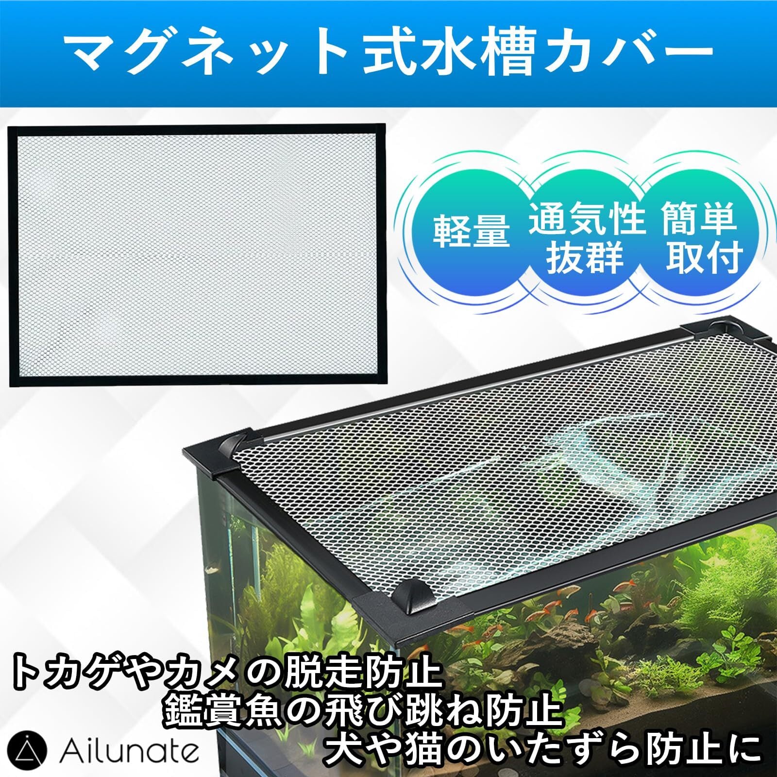 Ailunate 水槽カバー 脱走防止ネット メッシュ マグネット式 蓋 魚 カメ 爬虫類用 サイズ調整可能 簡単 取り付け 設置 ふた (60×30cm)