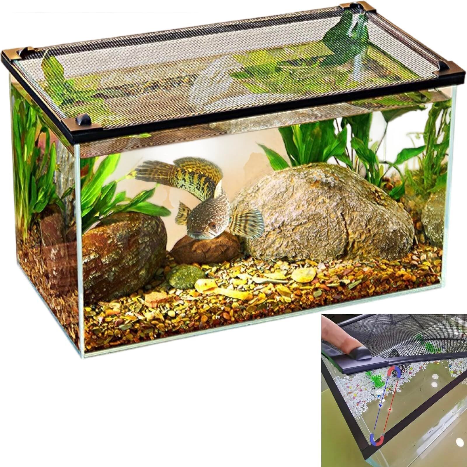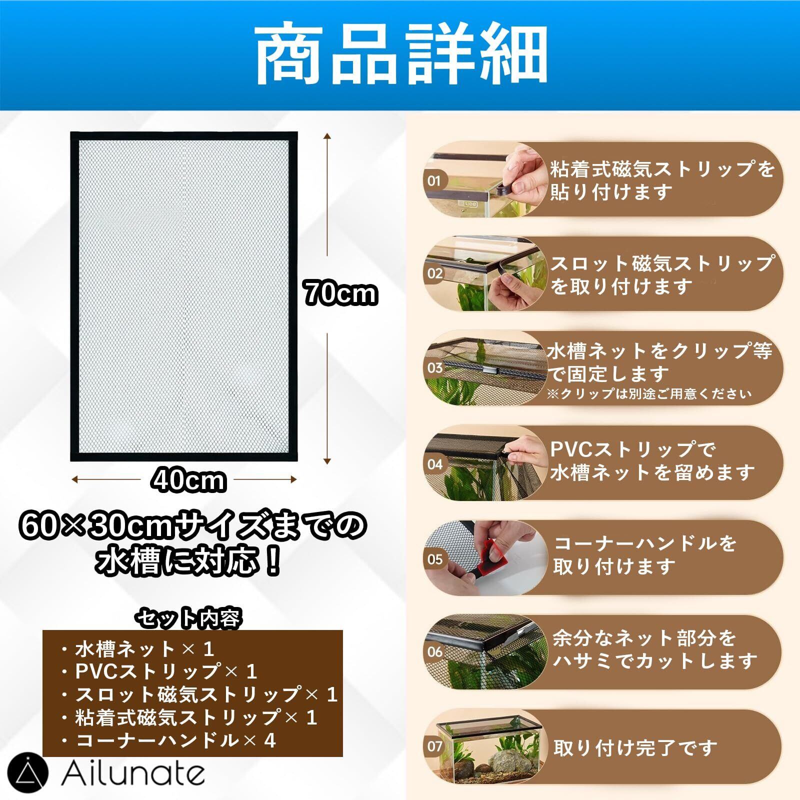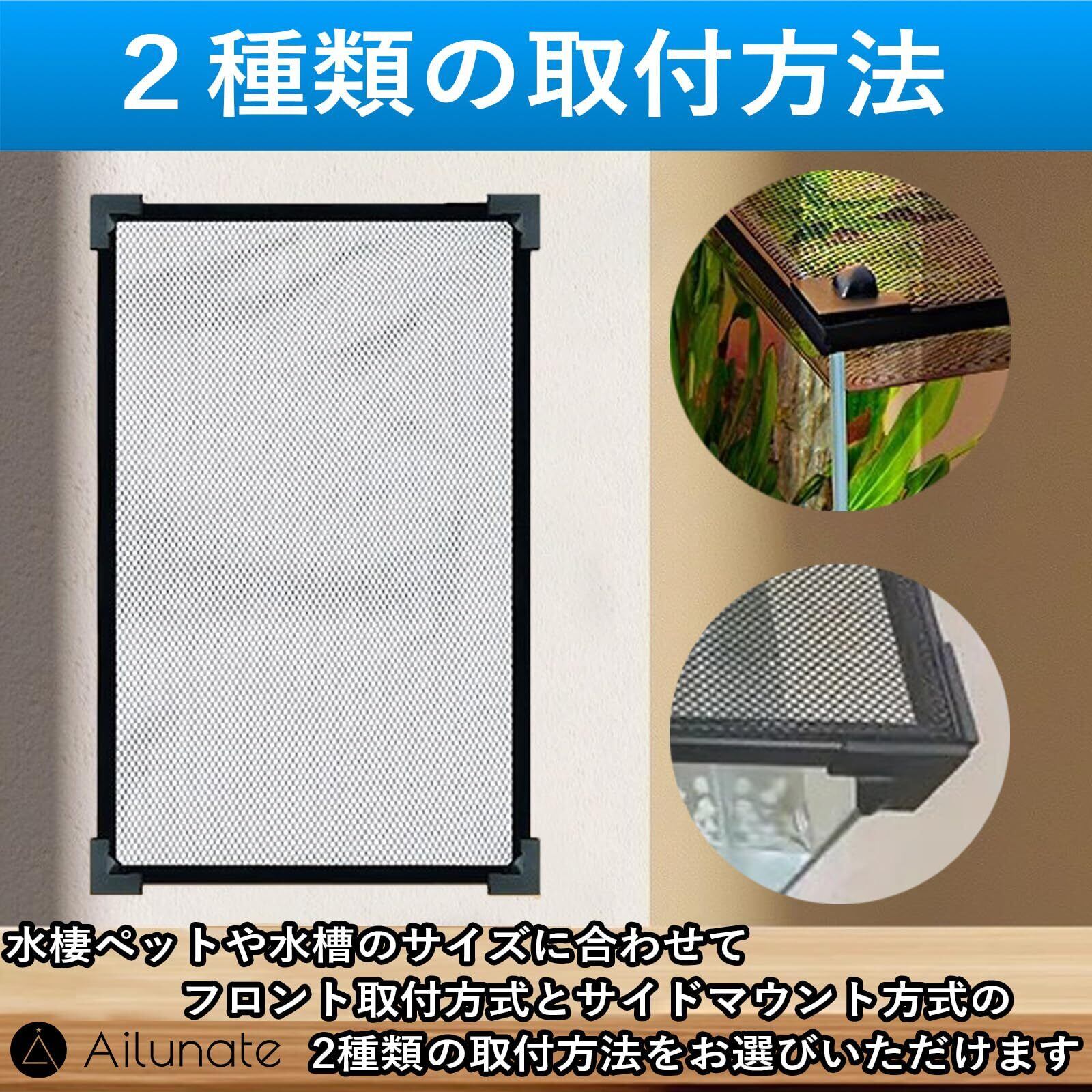 Ailunate 水槽カバー 脱走防止ネット メッシュ マグネット式 蓋 魚 カメ 爬虫類用 サイズ調整可能 簡単 取り付け 設置 ふた (60×30cm)