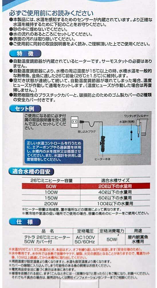 テトラ (Tetra) ミニヒーター 50W 自動温度調節器内蔵 難燃性プラスチックカバー付き 縦横設置 SP規格適合 観賞魚 金魚 メダカ 水槽