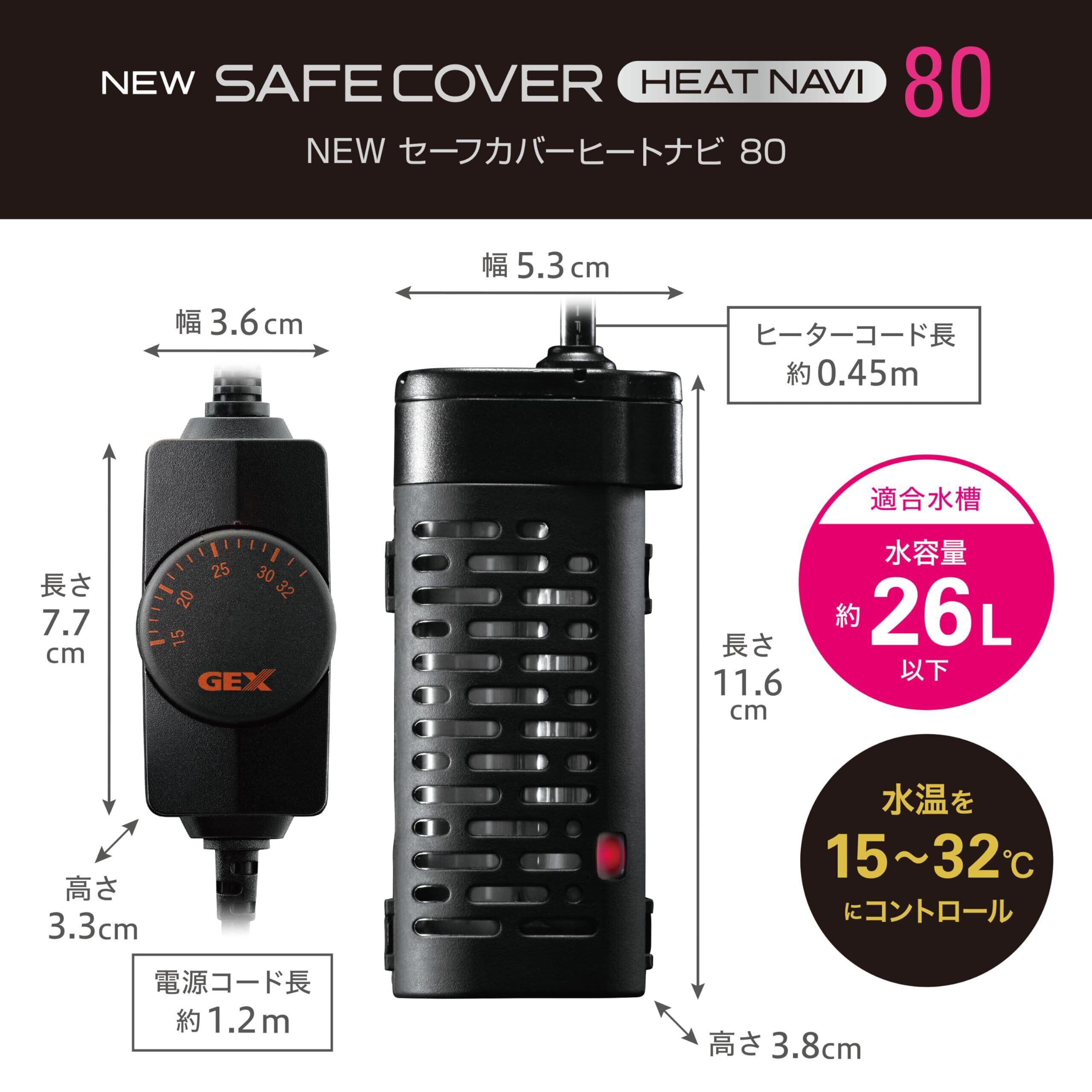 ジェックス GEX AQUA HEATER NEW セーフカバー ヒートナビ 80 サーモスタット+ヒーター一体型 縦横設置 安全機能付 SP規格適合 約26L以下の水槽用 80W