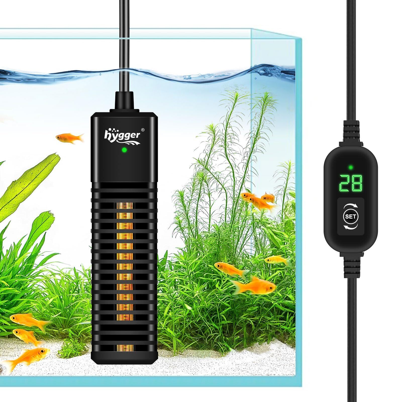 hygger 水槽ヒーター 60cm用 小型 15-34℃温度調節可能 ヒーター ミニ サーモスタット付き 57-75Lの海水・淡水水槽に適応 ベタ メダカ 熱帯魚 観賞魚対応 100W