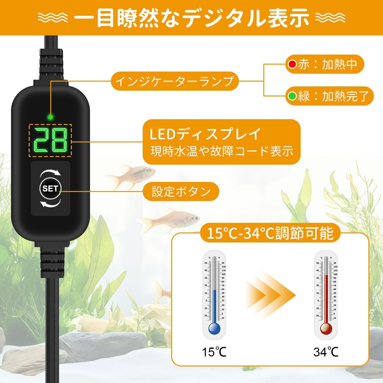 hygger 水槽ヒーター 60cm用 小型 15-34℃温度調節可能 ヒーター ミニ サーモスタット付き 57-75Lの海水・淡水水槽に適応 ベタ メダカ 熱帯魚 観賞魚対応 100W | AKIショップ
