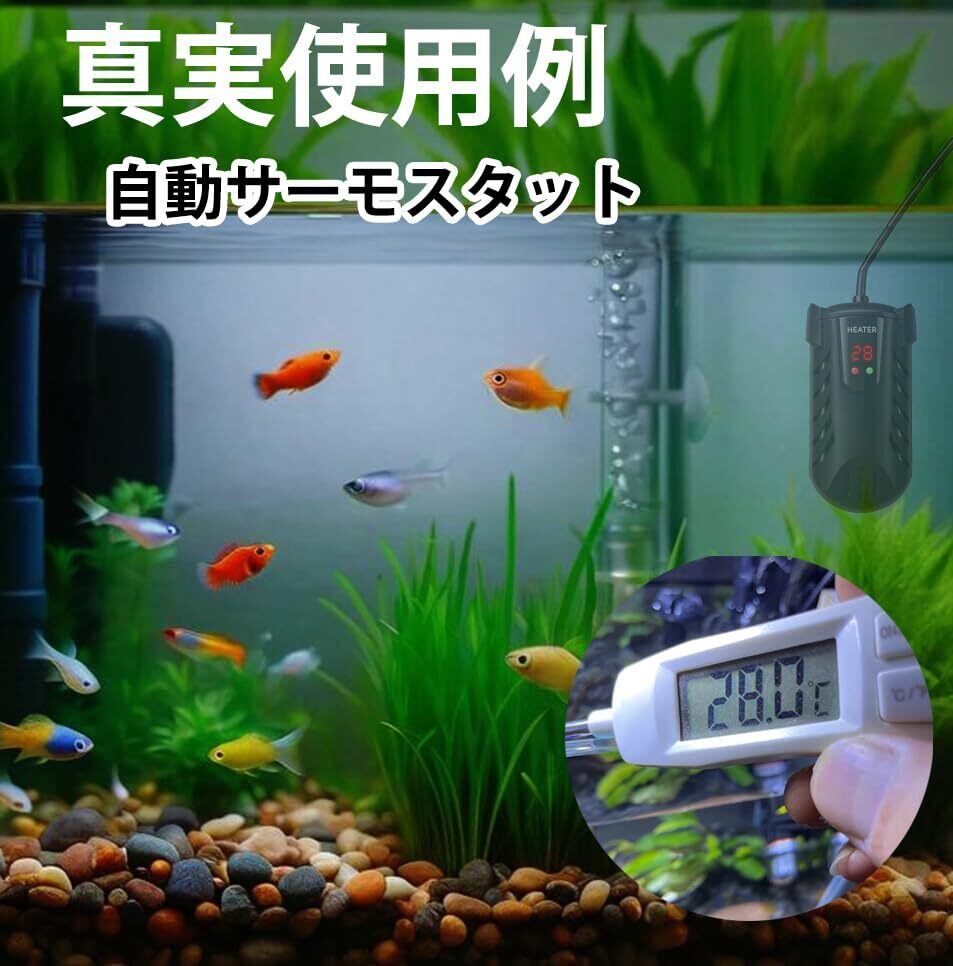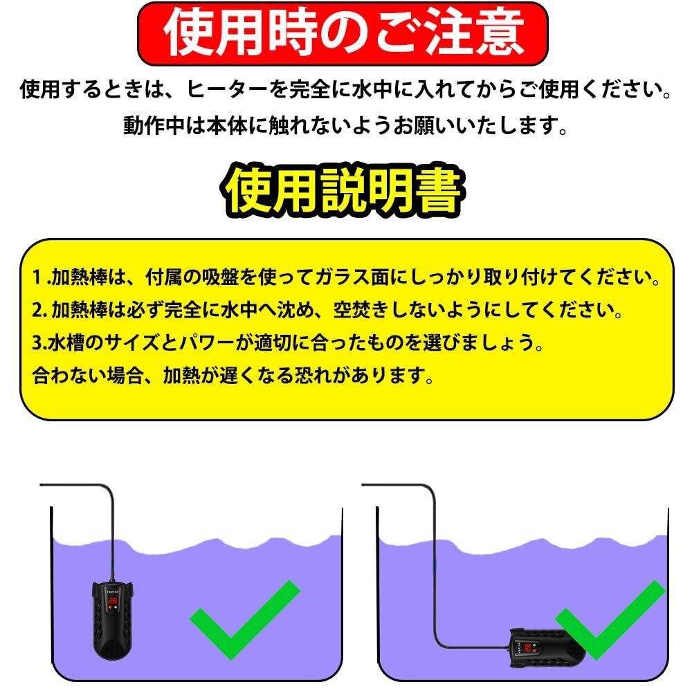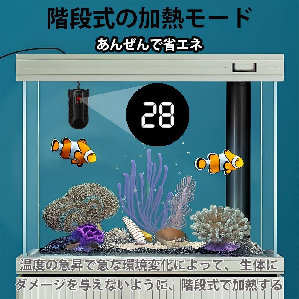 水槽 ヒーター 小型 100W LED温度表示 温度調整可能(15℃-34℃) 過熱保護 省エネ 安全加熱 縦横設置対応 熱帯魚/観賞魚/亀用 海水・淡水両用 60L以下対応