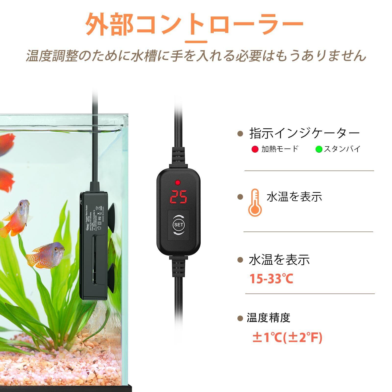 【操作簡単】水中ヒーターは、外部サーモスタット温度コントローラーを搭載。15〜34℃の範囲で簡単に温度設定が可能です。デジタルディスプレイで水温をリアルタイムに確認できるため、常に最適な環境を維持できます。さらに、インジケーターライトが加熱モードとスタンバイモードを明確に表示。ヒーターの動作状態が一目でわかるので、安心してご使用いただけます。