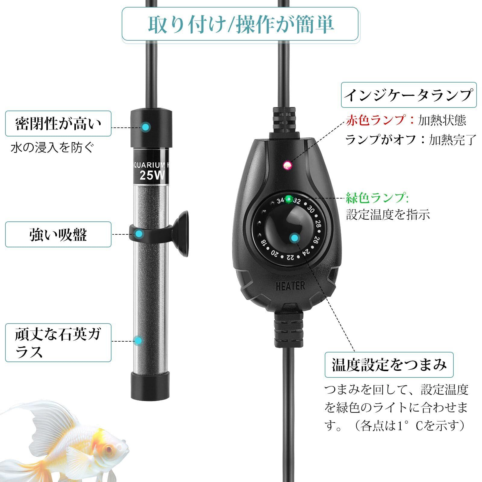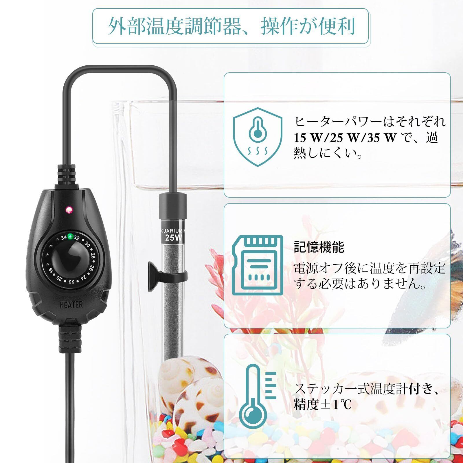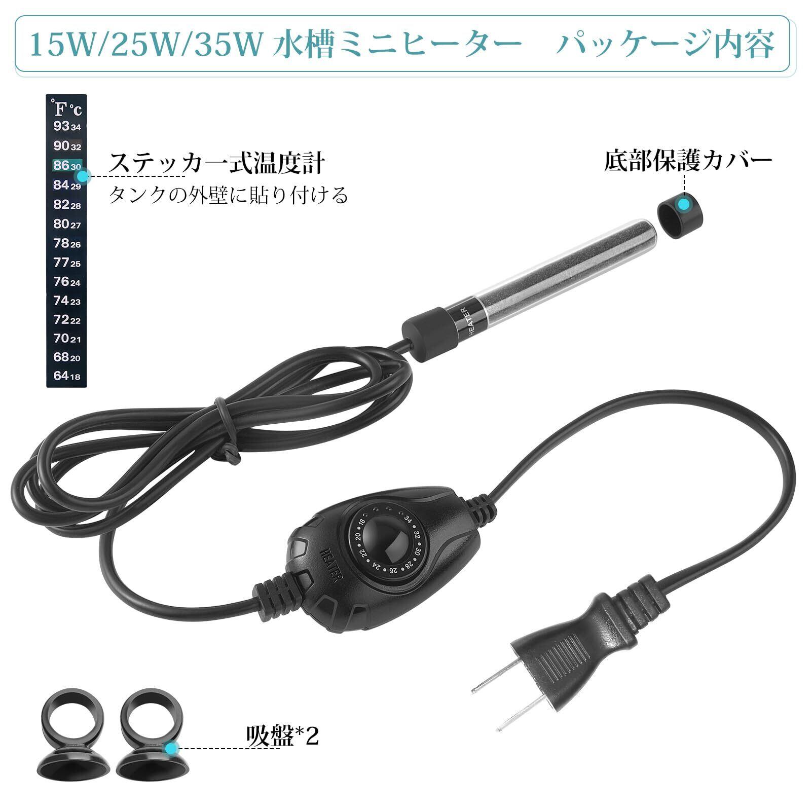 FEDOUR 15W/25W/35W 超ミニ水槽ヒーター、1-30Lミニ水槽適用 小型水槽ヒーター、温度調節器付きのメダカ/闘魚などの熱帯魚用ヒーター