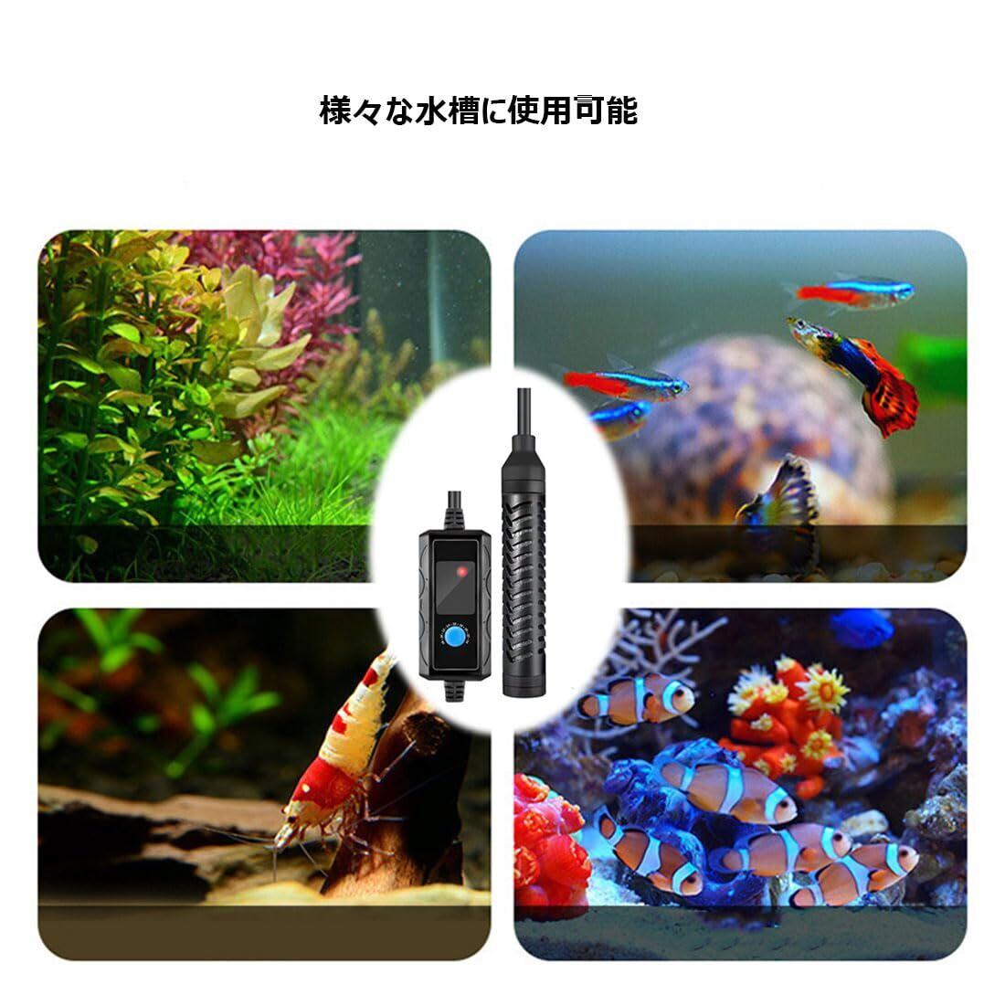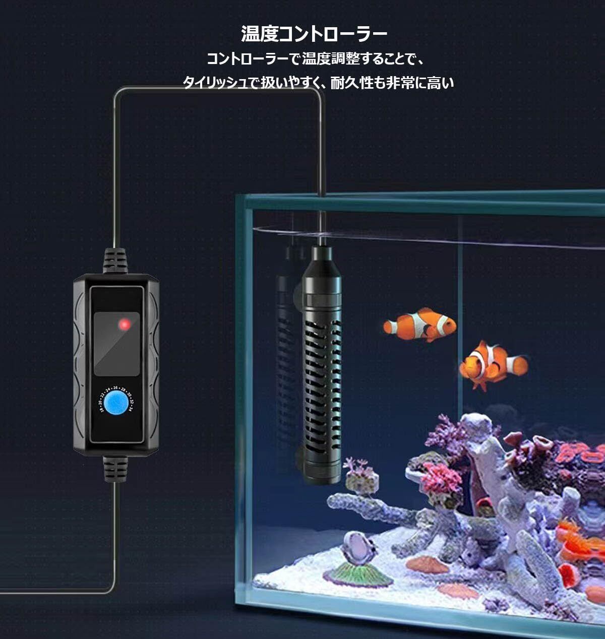 温度可変式 水槽ヒーター:サーモスタットが付きで、ヒーターは温度検知ができるようになり、温度検知しながら、設定温度に従って加熱します。温度管理がもっと簡単になります。
