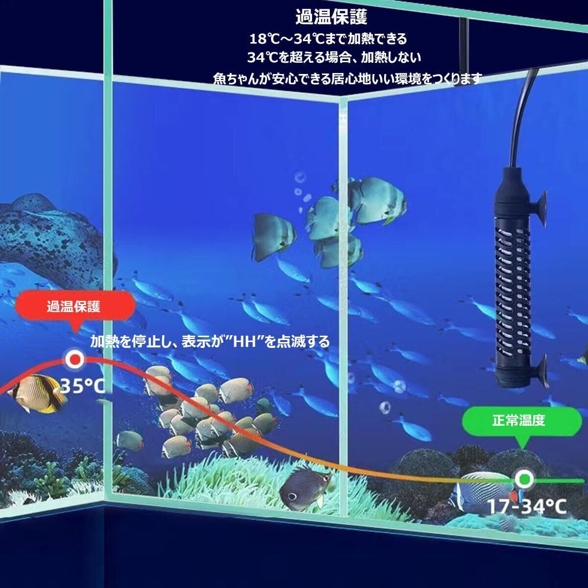 QOSEREN 水槽 ヒーター サーモスタット付き ミニヒーター 18度~34度温度設定 自動恒温 縦横設置 低水位も適用 セーフカバー 吸盤付き 水槽用 淡海水適用 100W