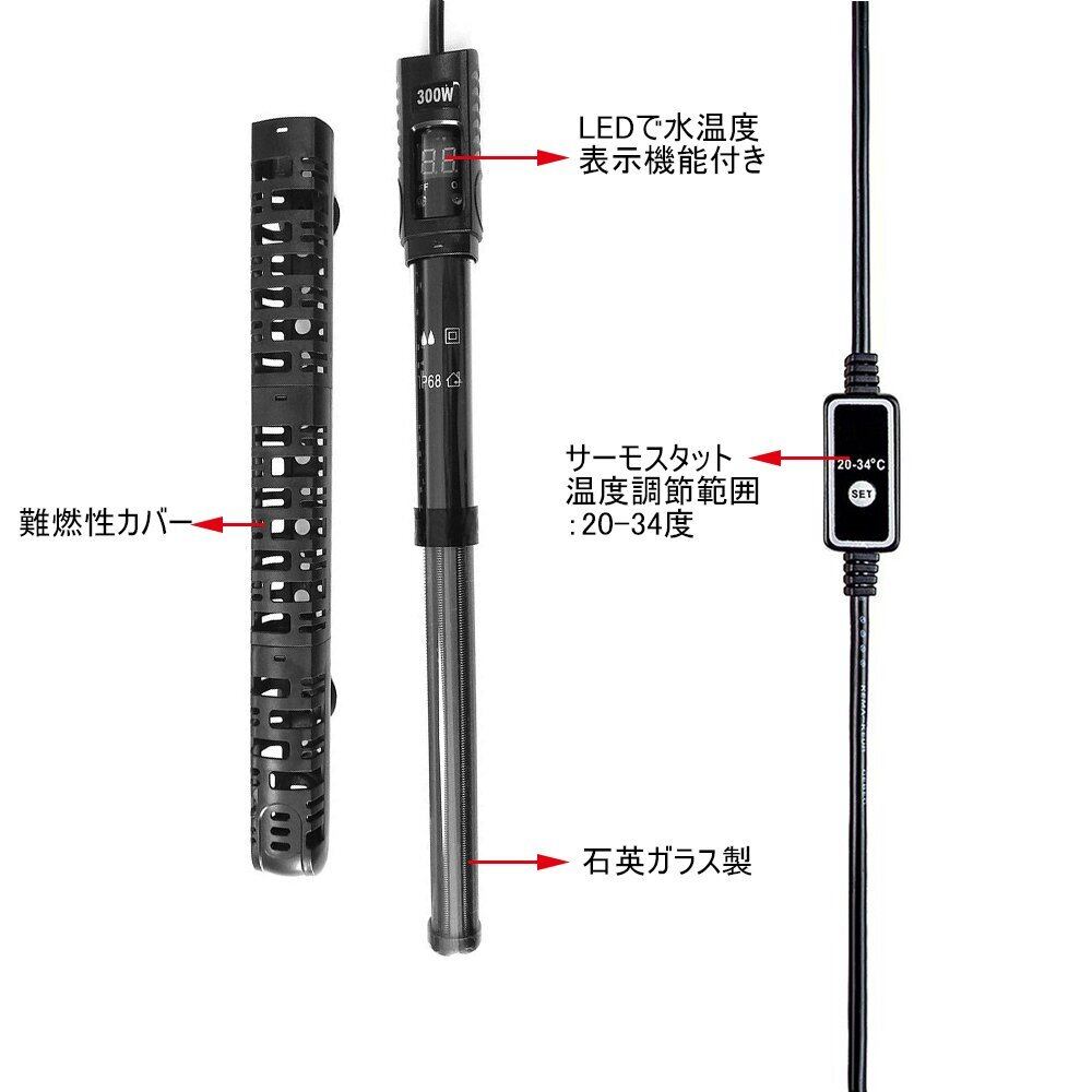 エルエンスタジオ オートヒーター 安全カバー付 水温管理用 水槽用ヒーター 熱帯魚・観賞魚対応 300W