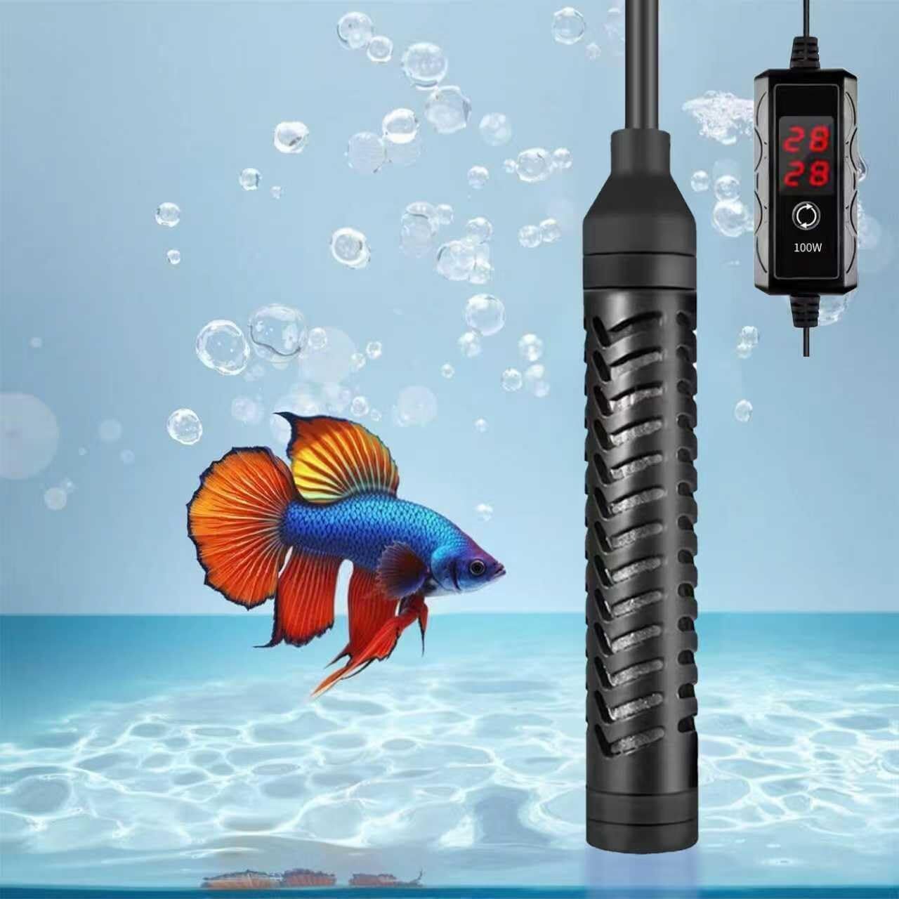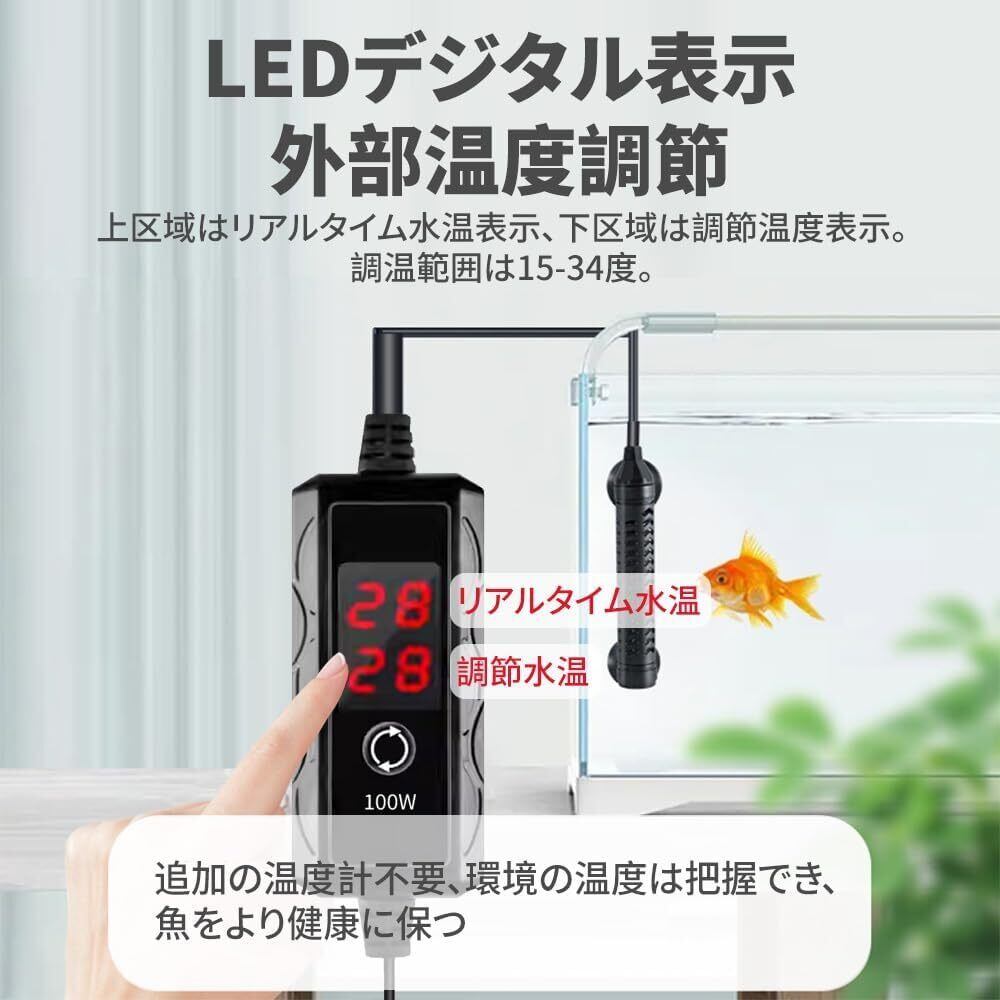 水槽用ヒーター デジタル温度表示 金魚/メダカ/カメ/熱帯魚 水温調節 16-34°石英ガラス 難燃性プラスチック 日本語取扱説明書付き リアルタイム水温表示 温度計 保護カバーと設置吸盤付き (50w)