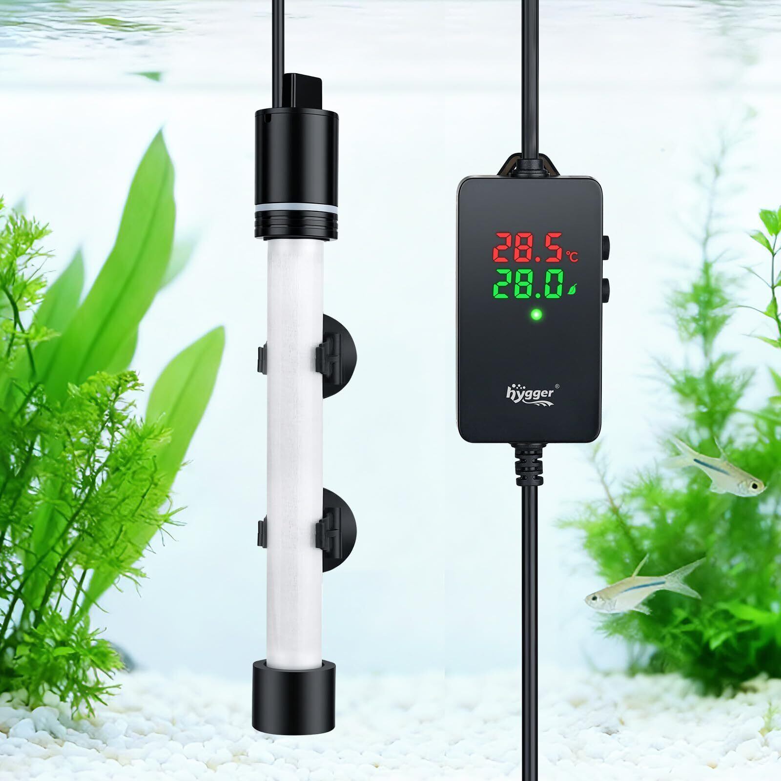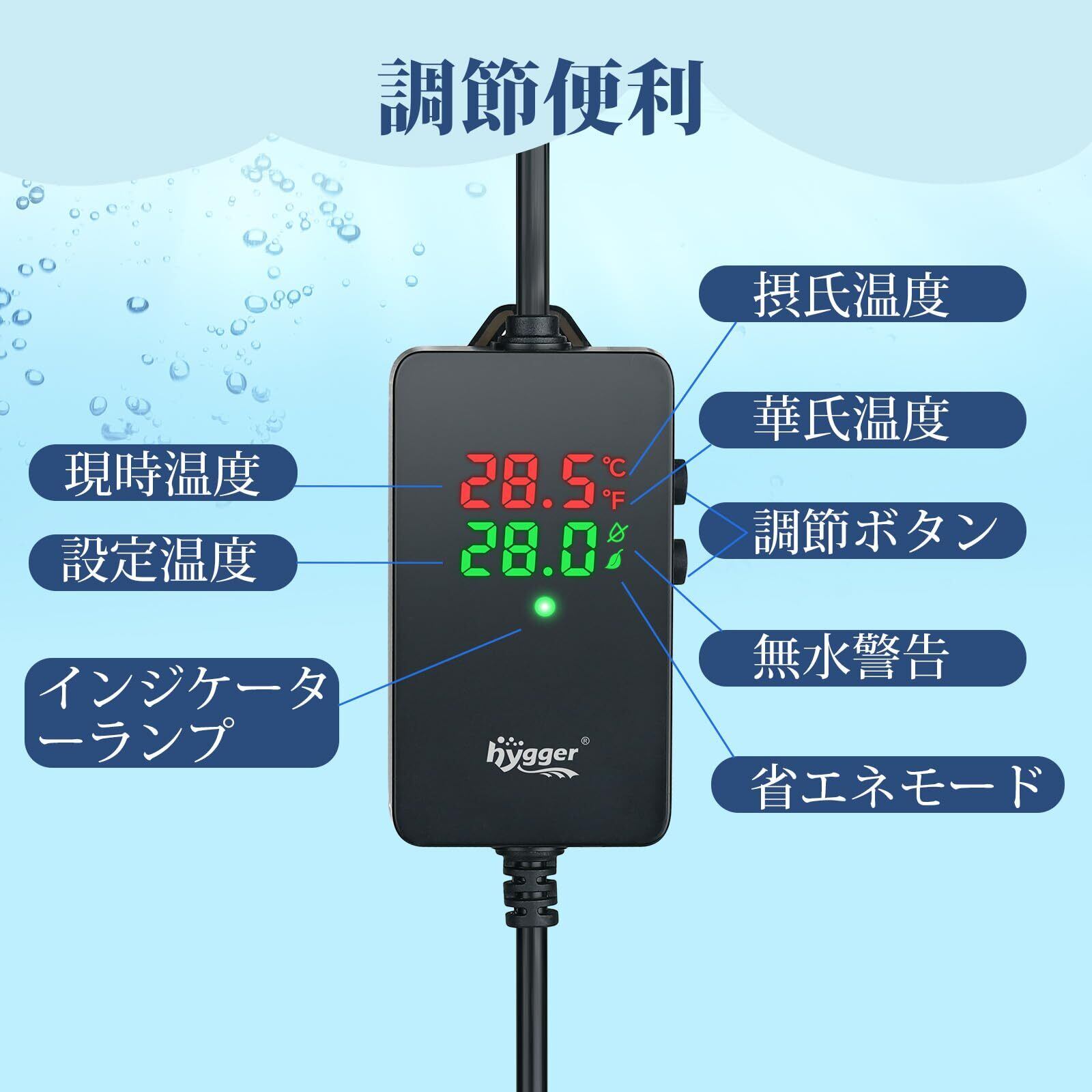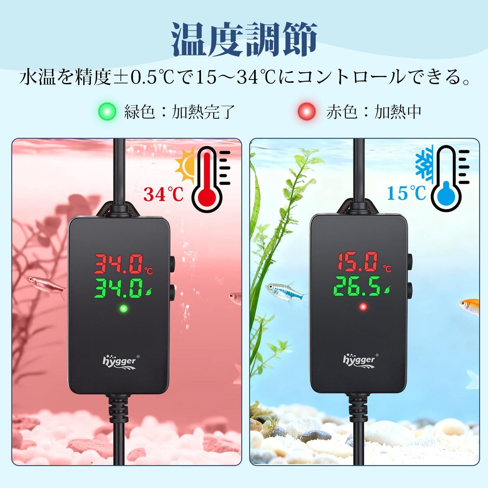 hygger 水槽 ヒーター 15~34℃調節 過熱保護 ブザー警告 自動温度制御 ロック機能 ℃/℉切替 省エネ 吸盤式 50W 19-38L水槽用