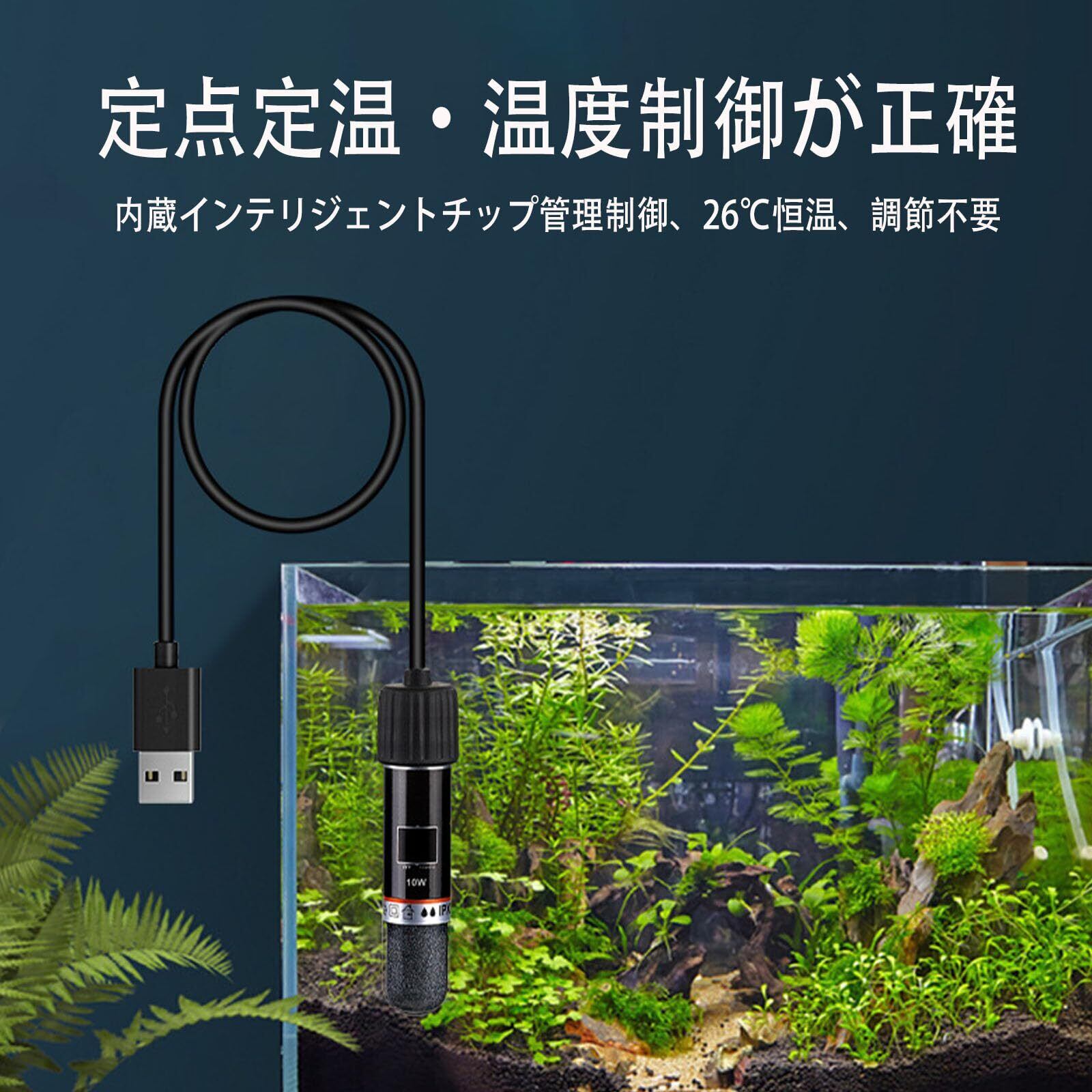 水槽用ヒーター USB接続 ミニサイズ 小水槽の自動恒温加温 コンパクトで美しい 安全 耐食性 耐高温 10W デスクトップ用小型水槽
