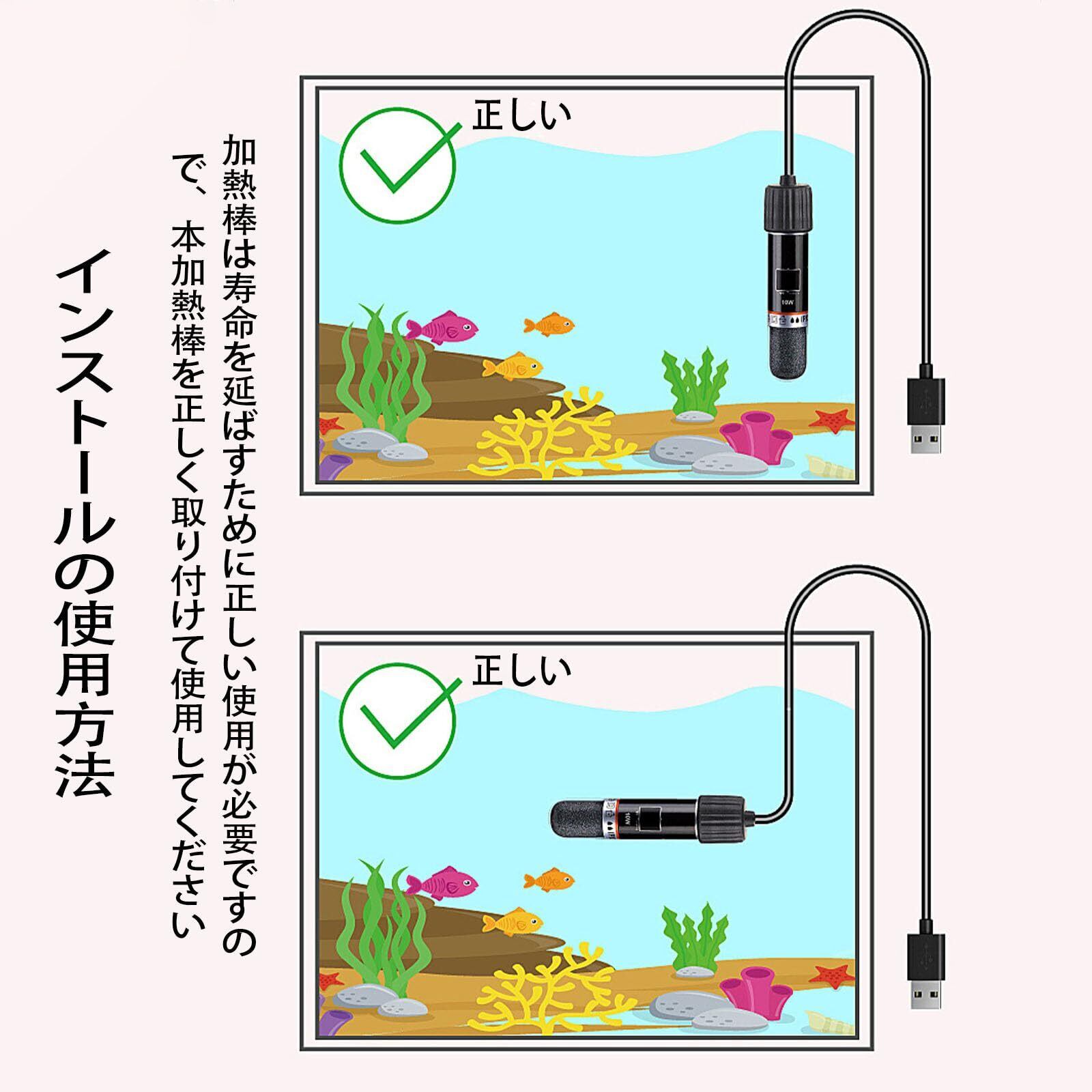 【省スペース】場所をとらない小型デザインで、デスクトップの貴重なスペースをとりません。注:低水位に使用する場合、ロッド本体は完全に水に浸漬する必要があり、usbの水槽加熱棒は水から離れて長い時間のために働くことはできません。
