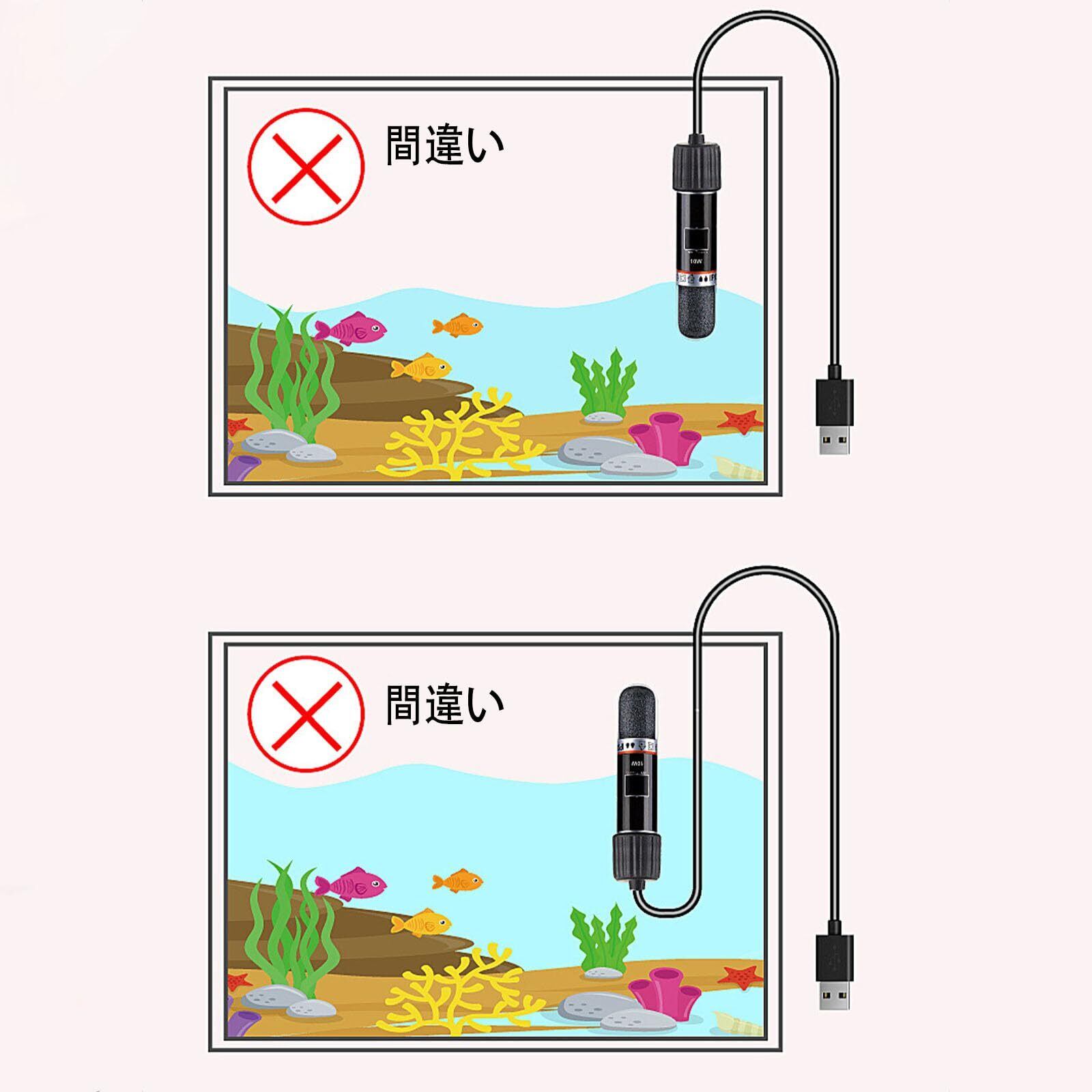 【多種互換】熱帯魚、金魚、カメなどの多種の水生ペットと互換性があり、異なるペットの需要を満たす。【省スペース】場所をとらない小型デザインで、デスクトップの貴重なスペースをとりません。注:低水位に使用する場合、ロッド本体は完全に水に浸漬する必要があり、usbの水槽加熱棒は水から離れて長い時間のために働くことはできません。