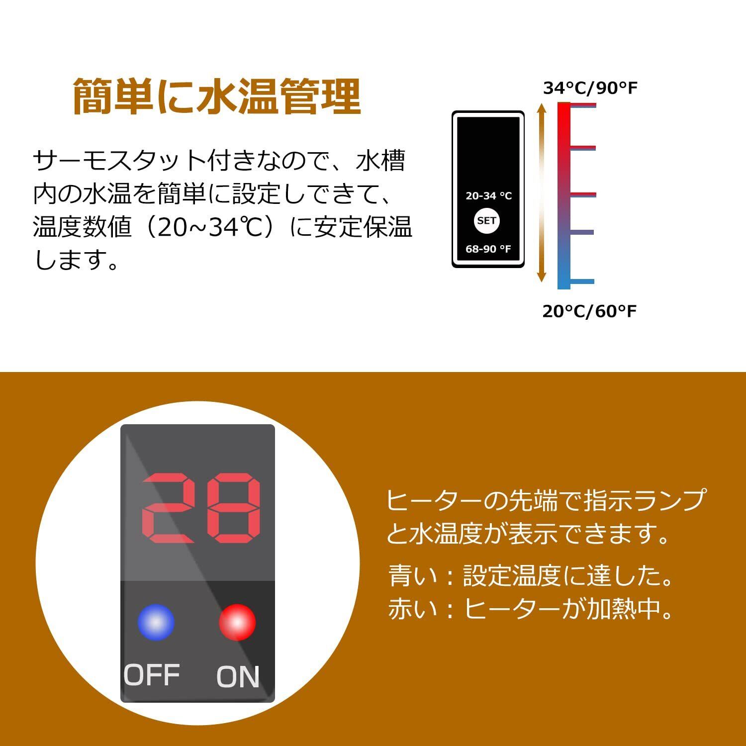 【デジタル水温表示】はっきりした大きいデジタル数字表示で水温が分かりやすいです。サーモスタットと一体型温度可変式ヒーターで、初心者でも簡単に水温管理できます。