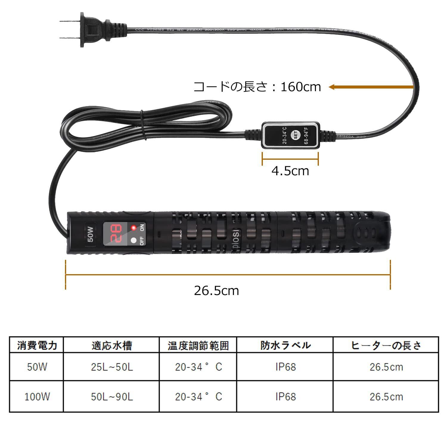 水槽ヒーター THYESCOM オートヒーター 20-34°C温度調節 安全カバー付き熱帯魚用ヒーター 縦横設置 淡水海水両用 金魚 メダカ アクアリウム (50W)