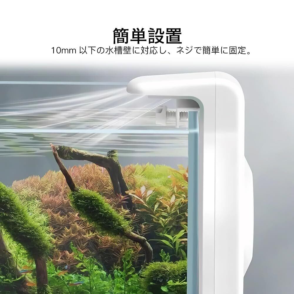 簡単設置:10mm以下の水槽壁に対応し、ネジで簡単に固定。取り外しもスムーズで省スペース。