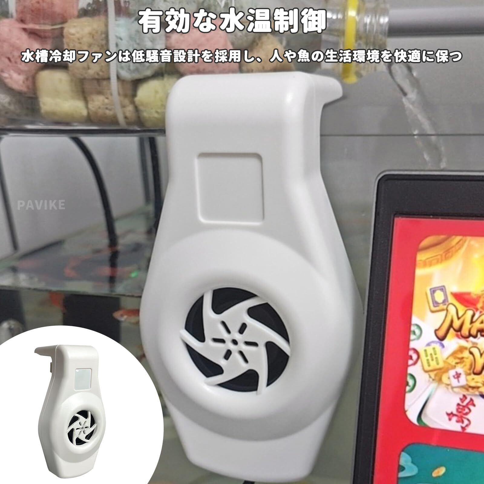 PAVIKE 水槽 扇風機 小型 水槽用クーラー 水槽クーラー USB 水槽ファン冷却 2レベル風量調整 取り付けが簡単 低騒音(ホワイト)