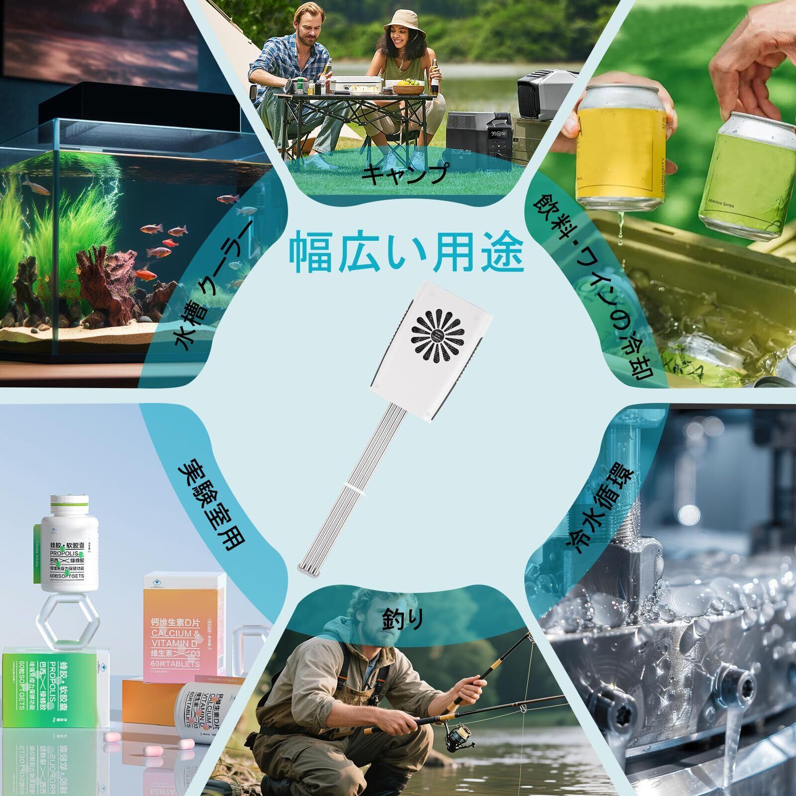 【汎用性が高い】水桶の冷却(容量20L以下)、飲料の冷却、水槽の冷却、果物の冷却、海鮮の冷却、研究用の冷却など、多様な冷却ニーズに適用可能です。