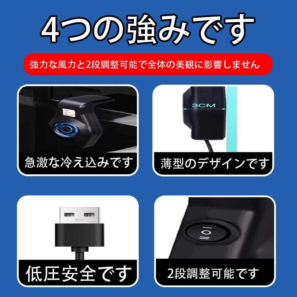 アクアリウム水槽用クーラーファン USB式 2段階風量調整 水温上昇防止 低騒音 取り付け簡単 夏の高温対策 魚飼育用冷却