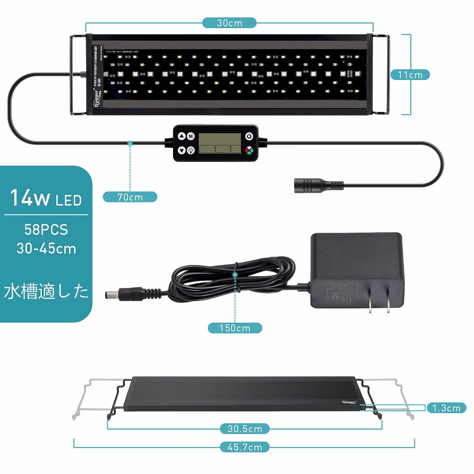 hygger 水槽 ライト 30cm-45cm 小型 LED10段階明るさ調整 8色照明 日光・月光モード DIYモード WRGB割合を調整可能 タイマー自由に設定 アクアリウムライト LCDディスプレイ IP68防水仕様 観賞魚飼育 水草育成用