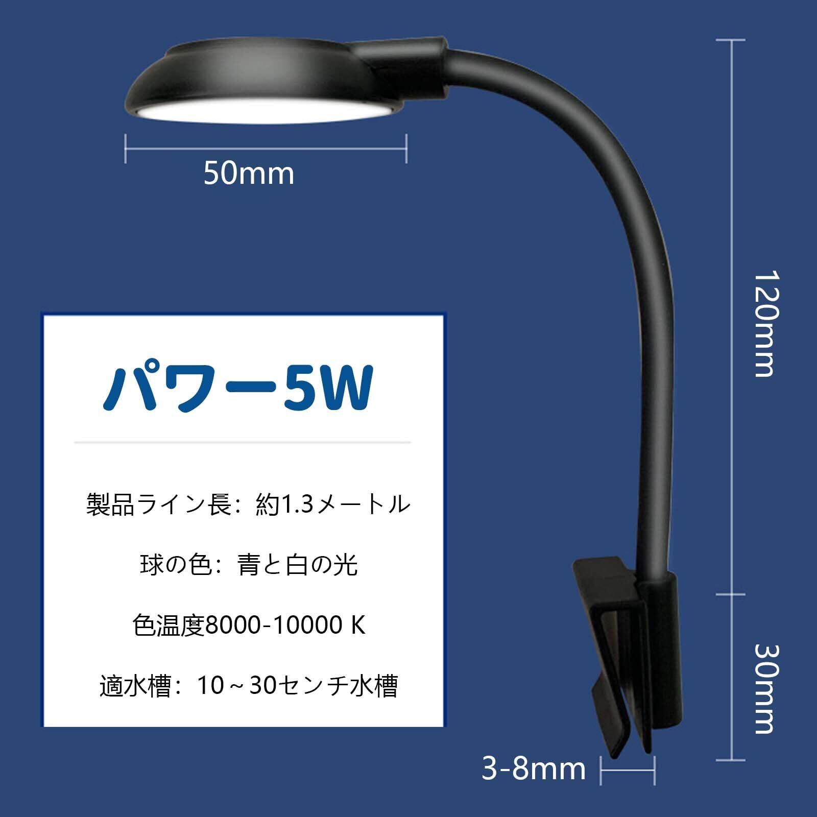 水族館 クリップライト 照明小型成長ライト クリップ式水槽ライト 360角度調節可能 5W 小型・軽量・高輝度 低エネルギー 目保護 水族館 水草育成 水槽照明 ワイドクリップ 熱帯魚 メダカ 金魚に最適
