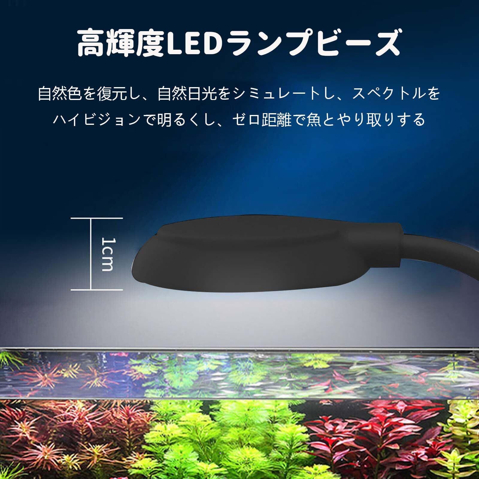 【簡単に照らす】曲げ可能で変形しにくいデザインの小型水槽 ライトは、さまざまな水槽の照明に適したユニバーサルホースデザインを誇示します。クリップオン機能により、取り付けと調整が簡単です。