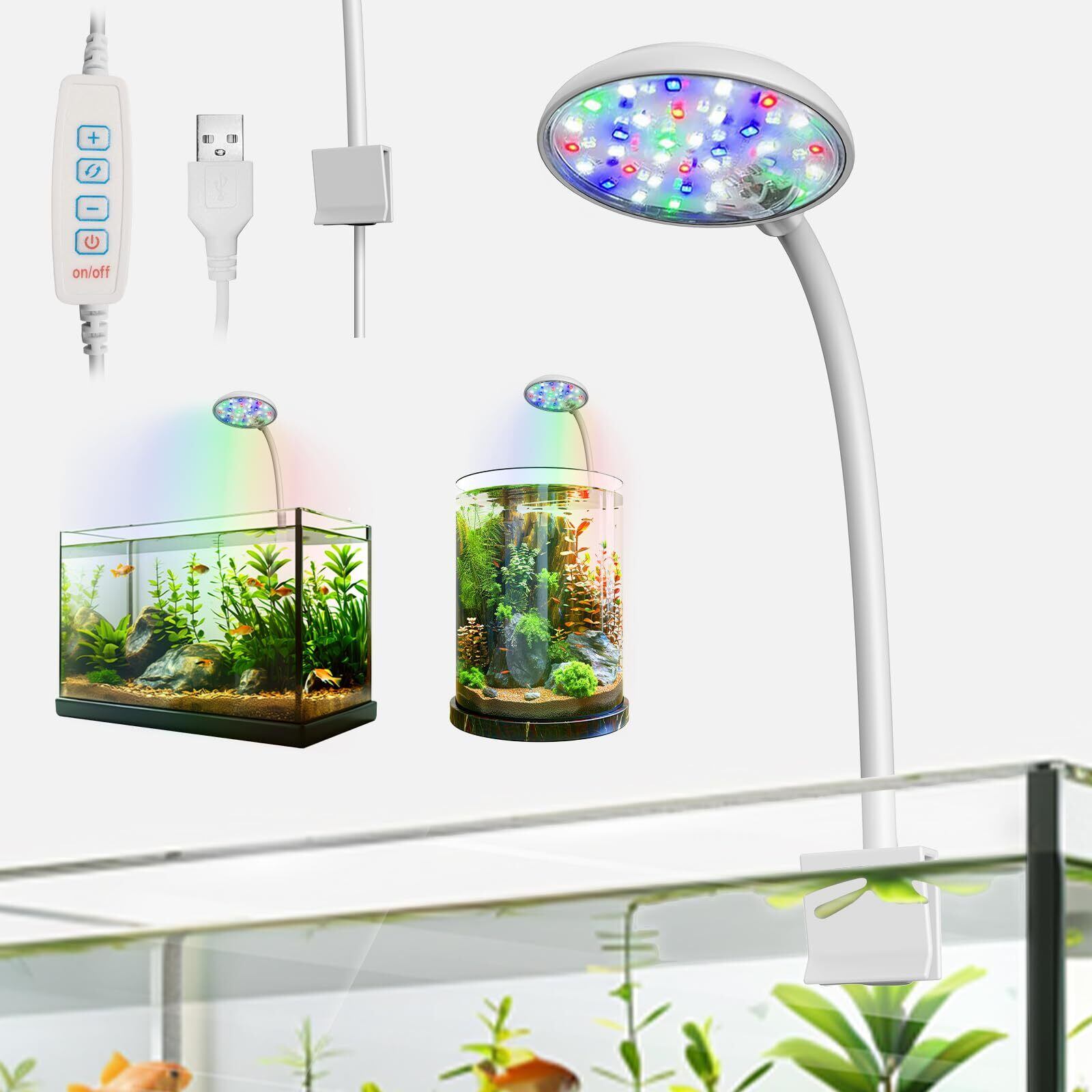 水槽ライト小型 HimaDana led34個 7W 小型水槽照明 熱帯魚ライト 水草ライト 3色点灯 複数台設置可能 生体観賞用 水草育成用 クリップタイプ 丸型/直方形水槽に対応(RGBライト)(タイマーなし)