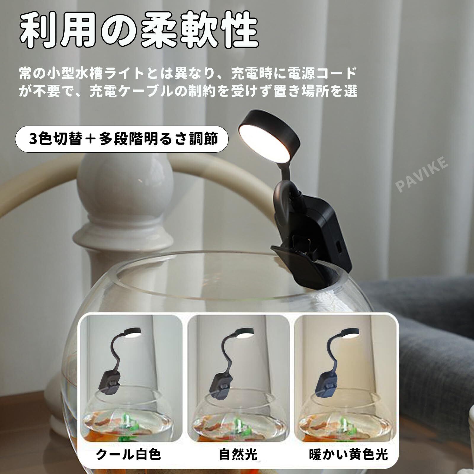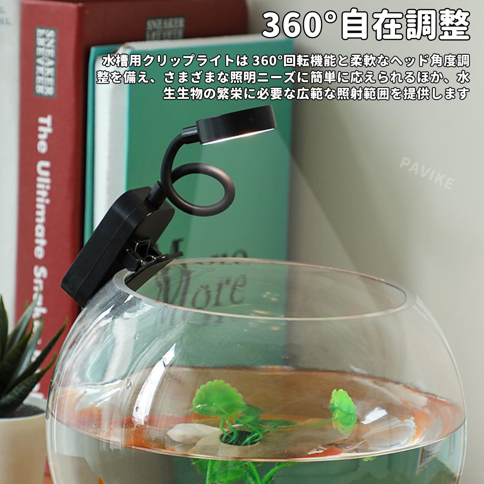 PAVIKE 水族館 クリップライト 照明小型成長ライト クリップ式水槽ライト 360角度調節可能 10段階の明るさ調節 3つの色温度 小型・軽量・高輝度 低エネルギー 多機能 目保護 水族館 水草育成 水槽照明 ワイドクリップ 熱帯魚 メダカ 金魚に最適(ブラック)
