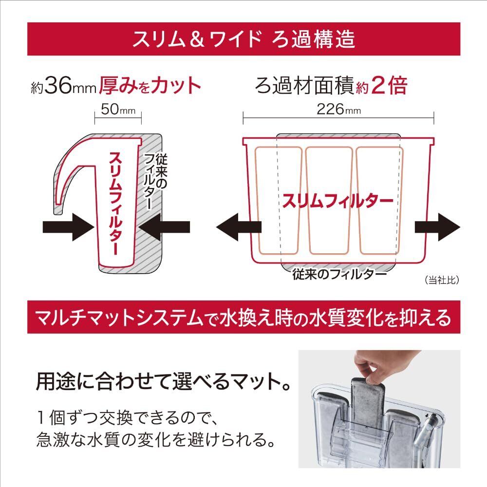 DC-Xポンプ採用。ろ過性能UP、極めて静音&省エネ化。 奥行スリムタイプだから水槽まわりすっきり。 【動作音約12%DOWN】【消費電力約39%DOWN】【最大流量約29%UP】※従来品50Hz時との比較(自社調べ) 高いろ過能力&水質変化を抑えるマルチマットシステム ●マルチマットシステムで水換え時の水質変化を抑える。用途に合わせて選べるマット。1個ずつ交換できるので、急激な水質の変化を避けられる。●ポンプへの異物の侵入を防ぐディスク型インペラー採用●やわらか水流でメダカや金魚などに最適。ワンタッチろ過材交換でお手入れもラクラク。●流量調節機能付●専用ろ過材3個付(活性炭マット2個、バクテリアマット1個)※ろ過材の交換は「GEXスリムマットシリーズ」をお買い求めください。 ●DC-Xポンプ採用で静音・省エネに進化 ●USB電源 DC5V/1A以上 ●本製品にはUSBアダプターは付属していません 。 <製品サイズ>約幅22.6×奥行12.0×高さ15.2cm(水平調節ツマミ除く) <流量>4.8L/分 <コード長>約1.5m <適合水槽(水容量)>35L以下 <取り付け可能水槽>水槽内高さ20cm以上(底砂がない場合)、水槽内幅21cm以上、枠幅12mm以下 <定格電圧/電流/消費電力>DC5V 0.38A 1.9W <アダプター使用時の消費電力>AC100V 2.8W <使用アダプター(別売)>USBアダプター G-1A 入力:AC100V 出力:DC5V/1A
