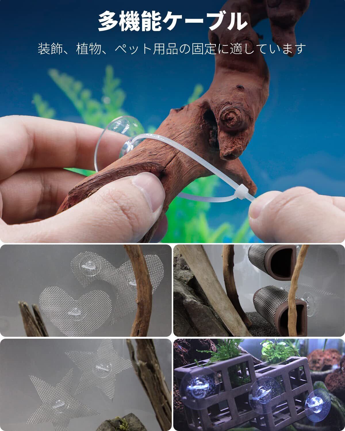 調節可能な結束バンド: この薄いケーブル結束バンドは、吸盤に完全にフィットします。 エアラインのチューブや装飾品を保持したり、コケを束ねたり、小さな植物を配置したりするのに適です。