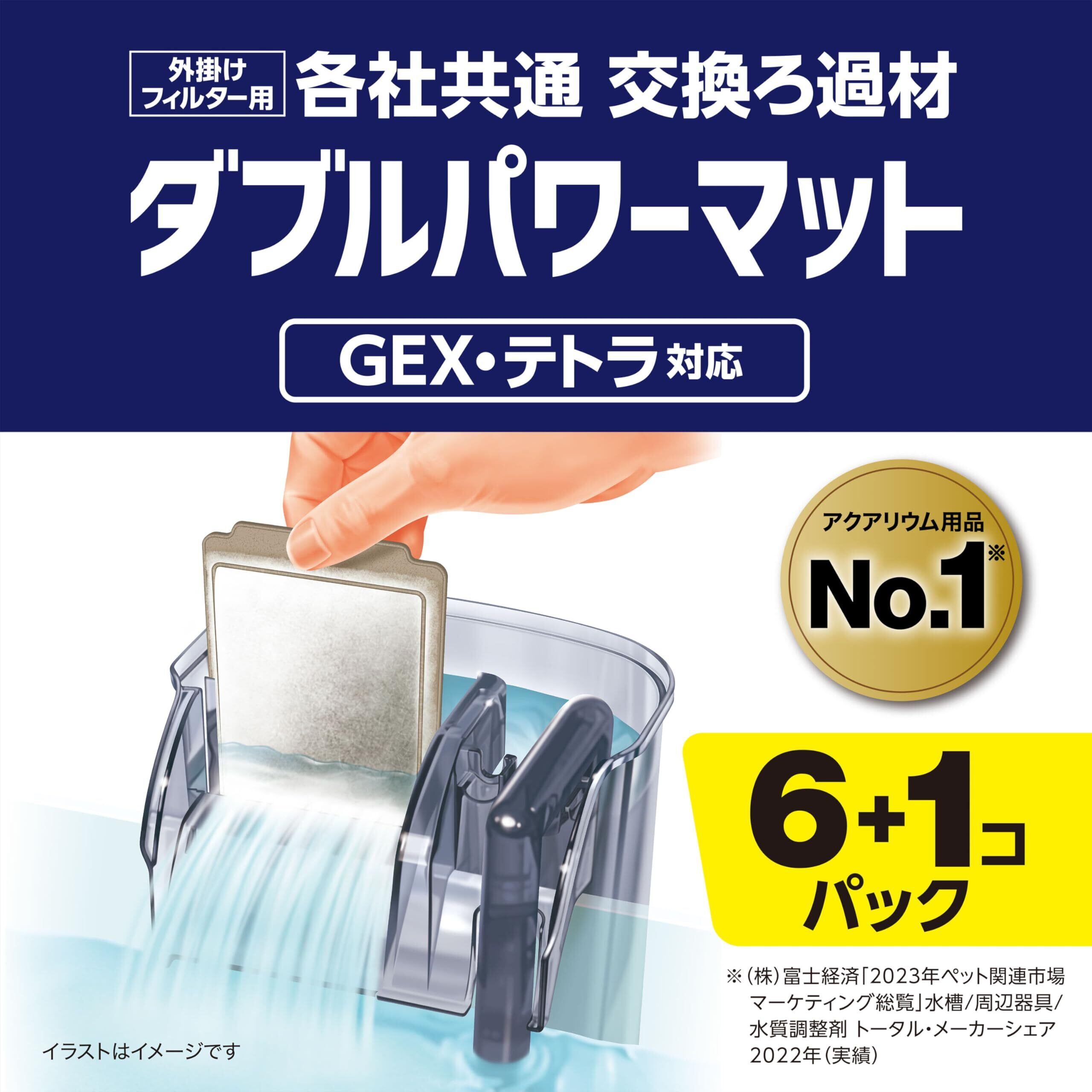 ジェックス GEX AQUA FILTER 外掛け共通 ダブルパワーマット 小 高吸着活性炭+バクテリア繁殖ろ過材 植物由来プラスチック使用 各社共通タイプW8 6+1コパック