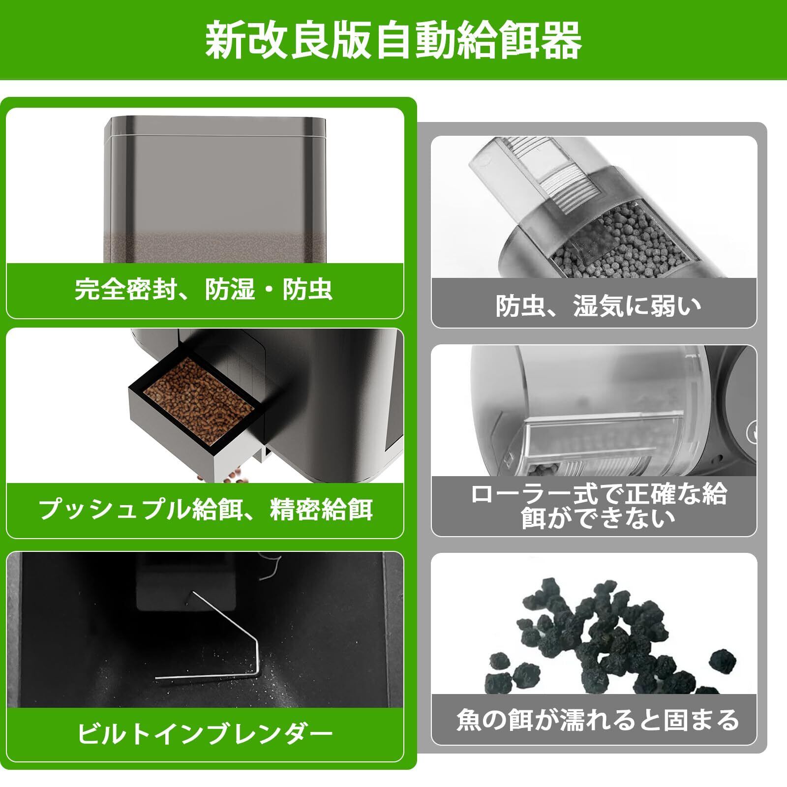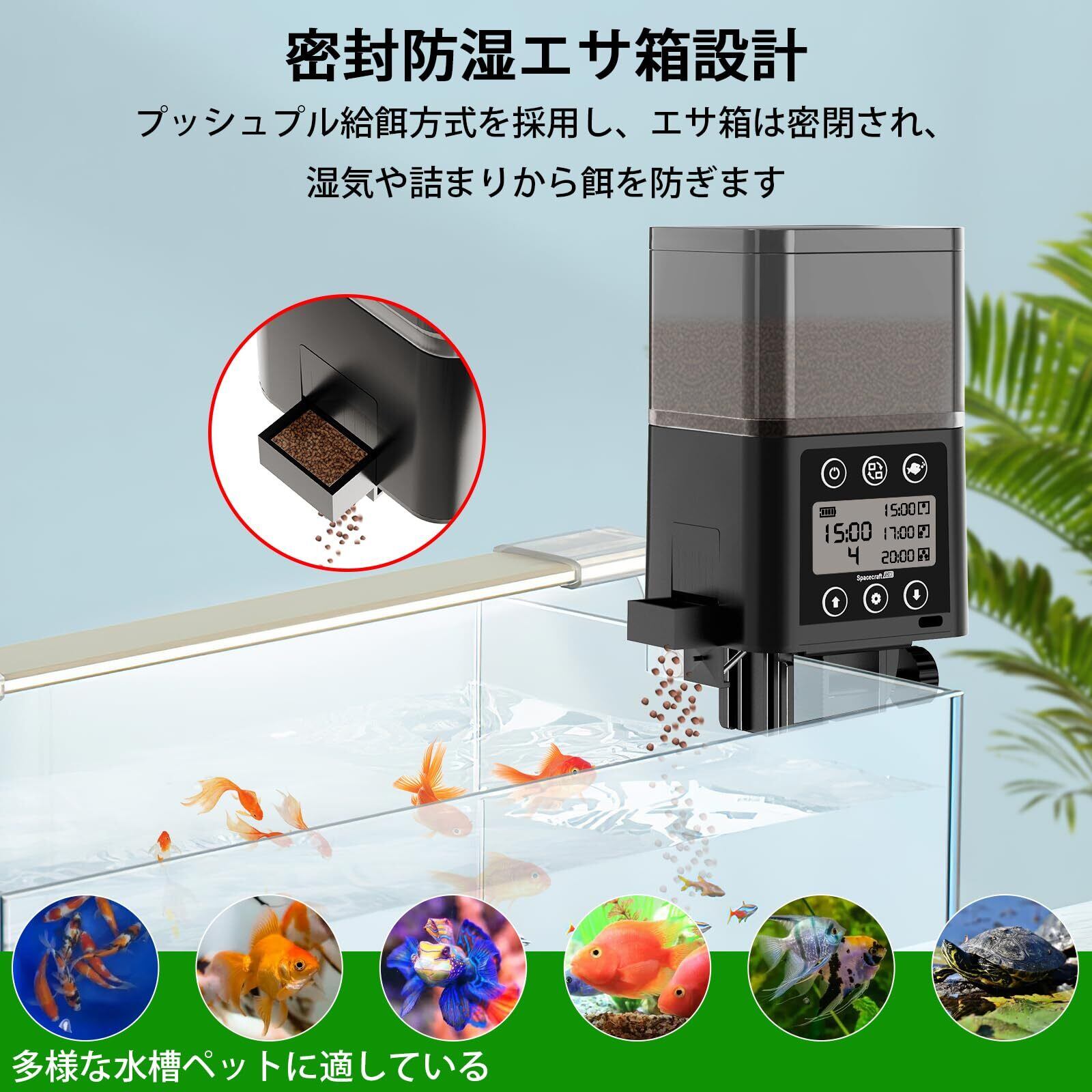 特徴 インテリジェント給餌器、給餌量調整可能、密閉式防湿設計、静音
