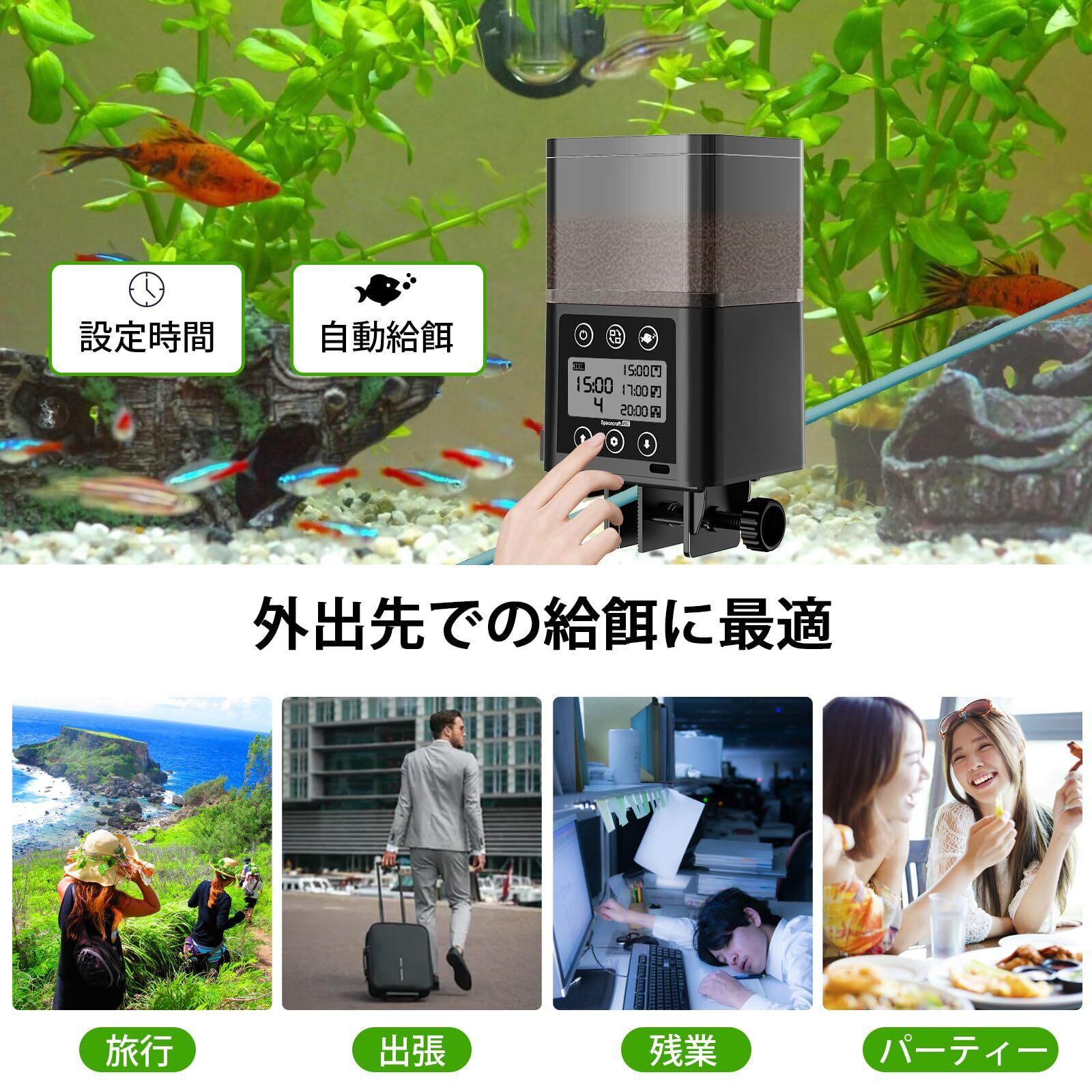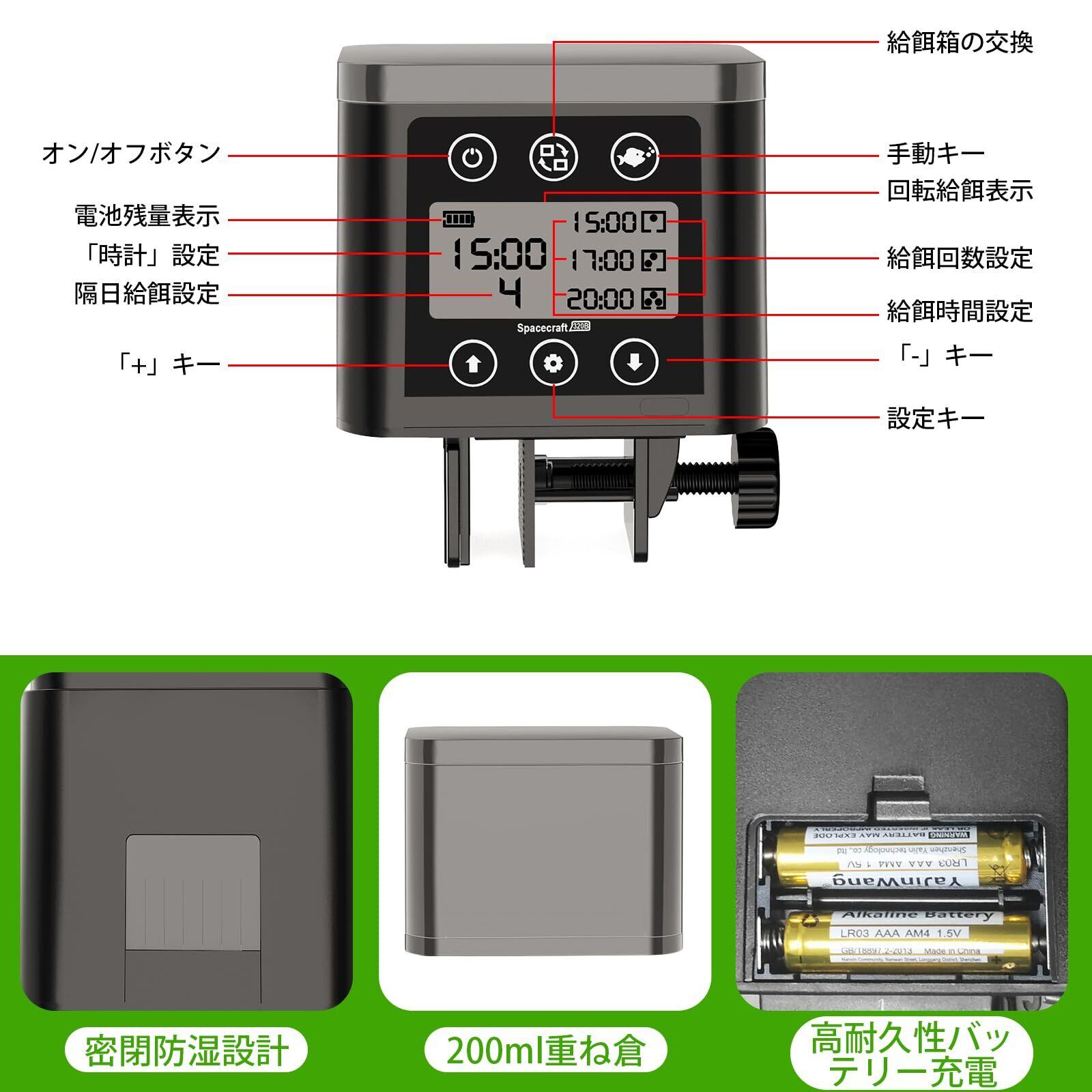 自動給餌器 魚 魚自動給餌器 オートフィーダー 魚 メダカ 熱帯魚 餌 餌やり器 金魚 給餌器 自動餌やり機 餌やり機 魚 時間設定 給餌量調整可能 密閉式防湿設計 静音 320ml大容量 多段階&多回転数