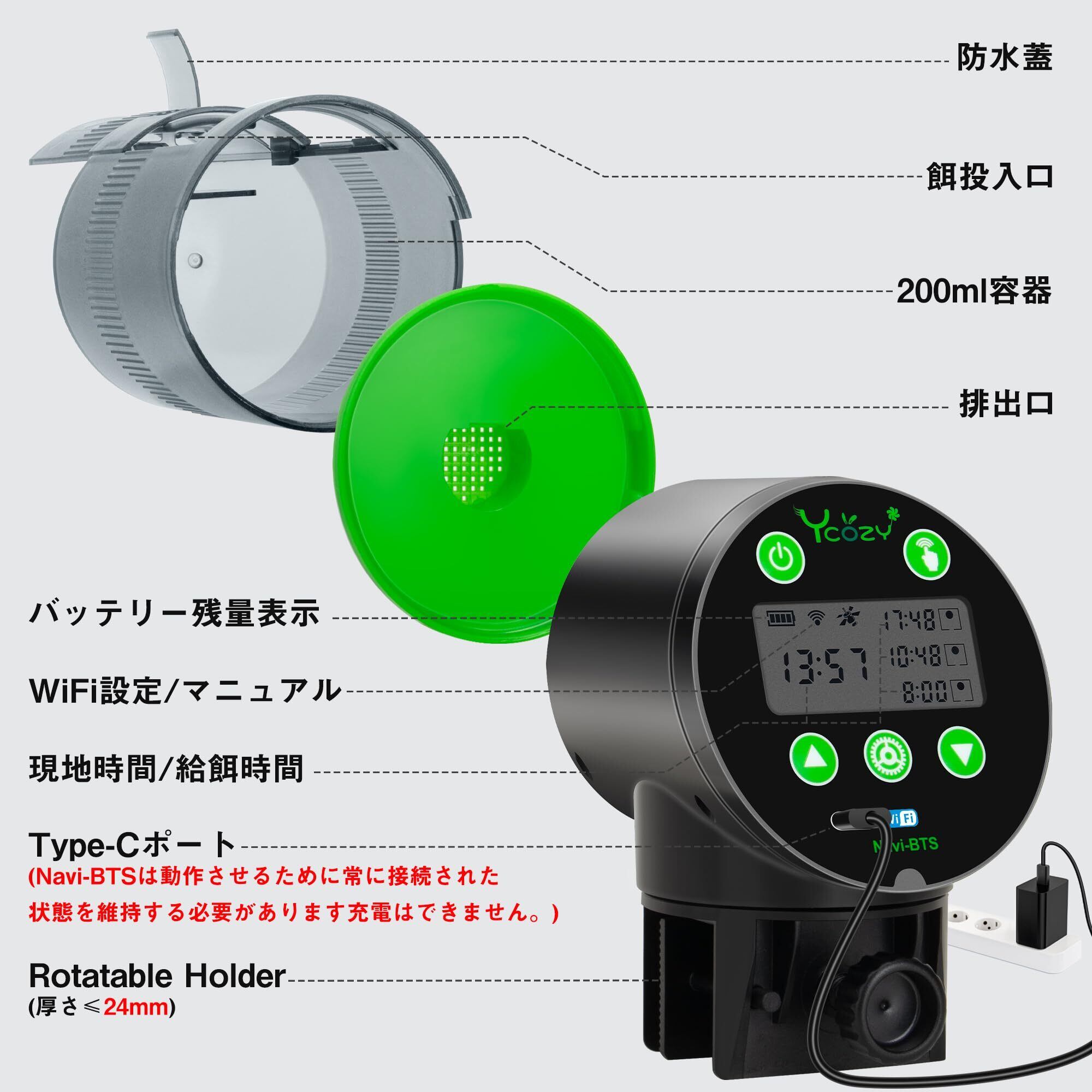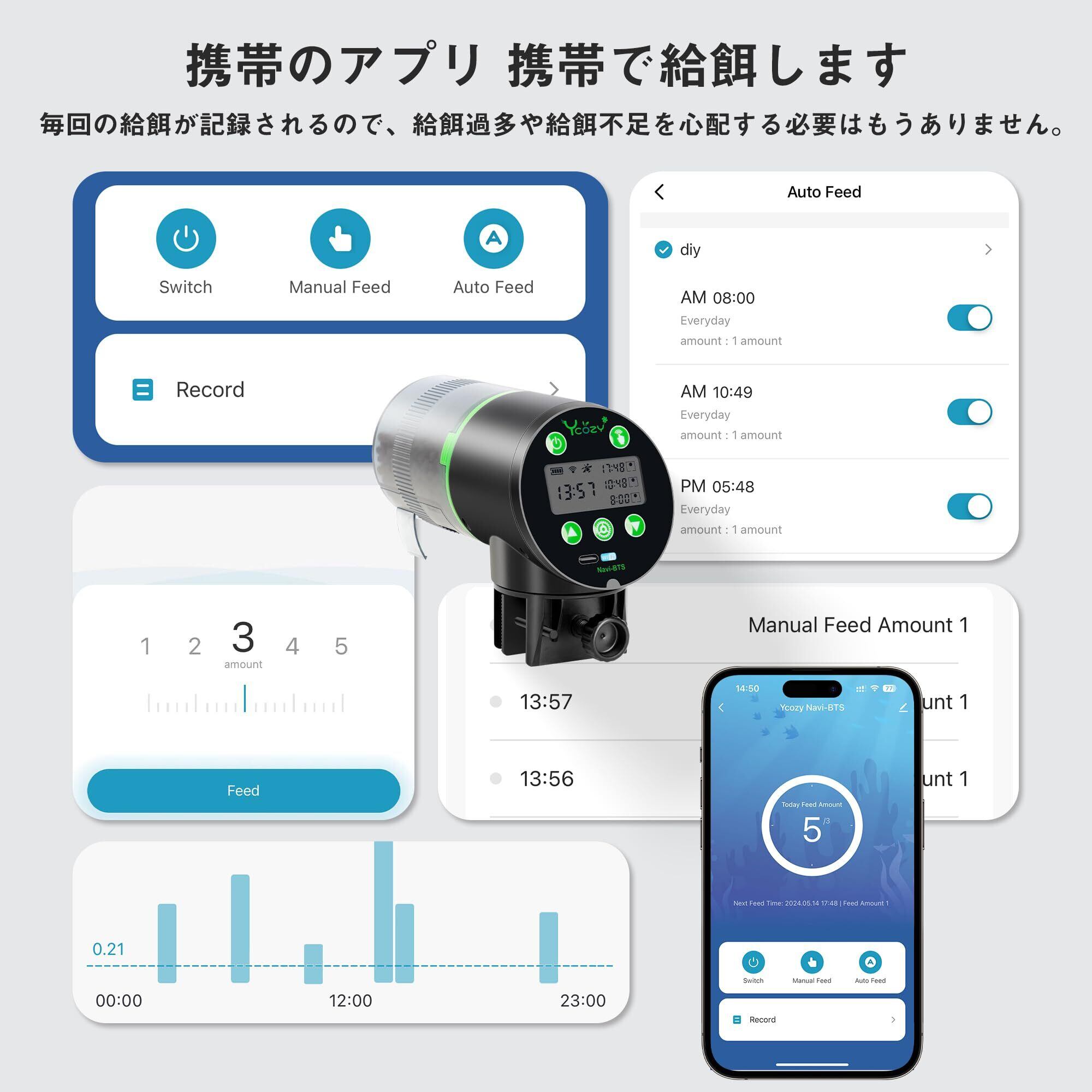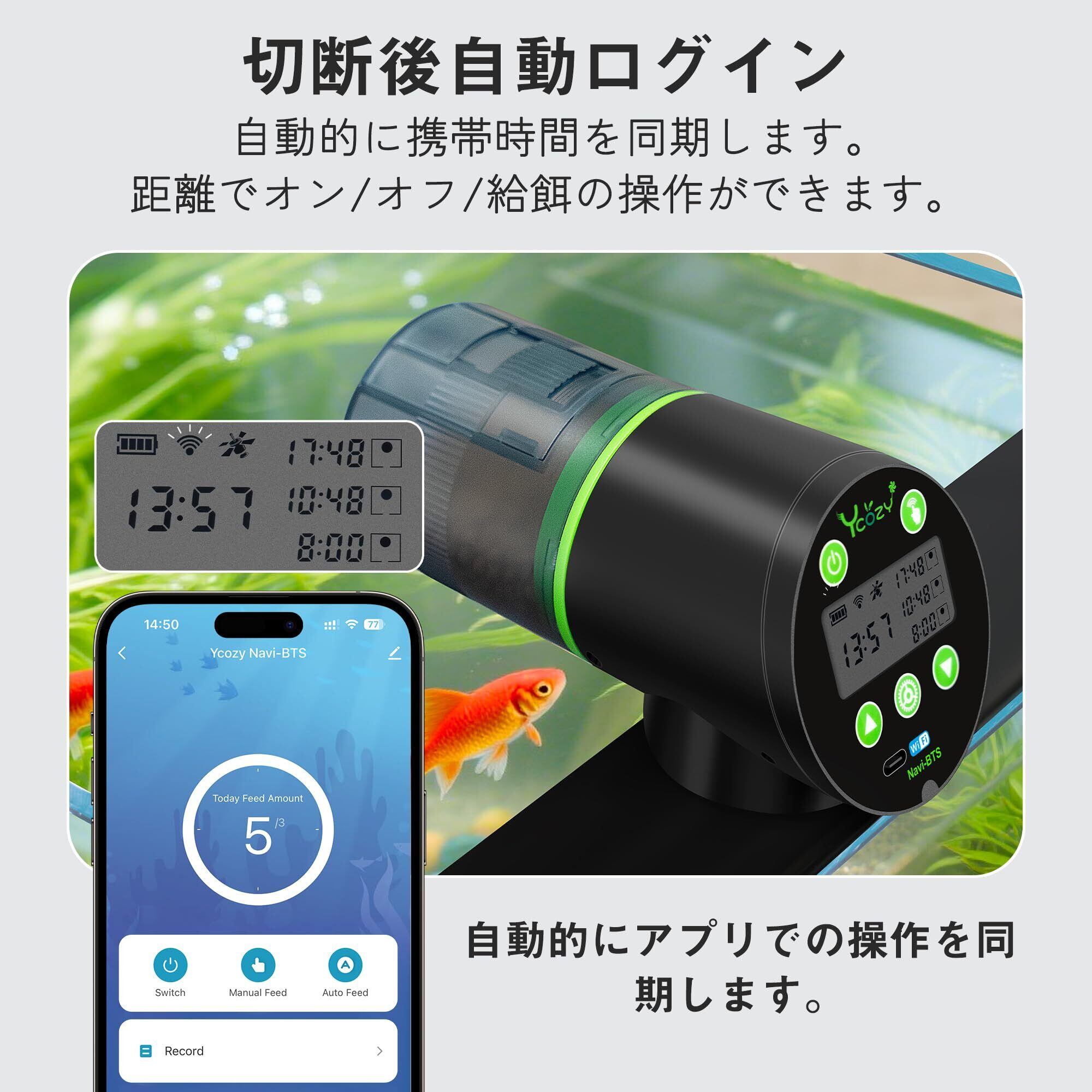 Ycozy WiFi 自動給餌器 魚 APP 定時 定量 遠隔操作可能 水槽 自動餌やり機 魚 日本規格プラグとUSB-C 通電作業 熱帯魚 亀 金魚オートフィーダー | Navi-BTS