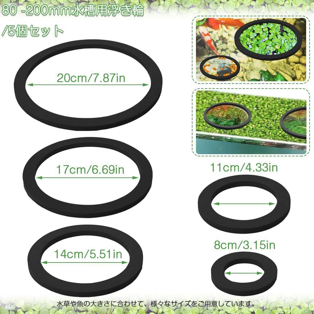 水槽 餌拡散防止リング EVA 水槽用浮き輪 5個セット 軽量 浮き草フェンス 魚餌リング 水槽内のダックウィード 保護 植物の種類に対応 淡水/海水水槽/庭池/力メ水槽 多環境対応 5サイズ 80-200mm 水槽用浮き輪 丸型(ブラック)