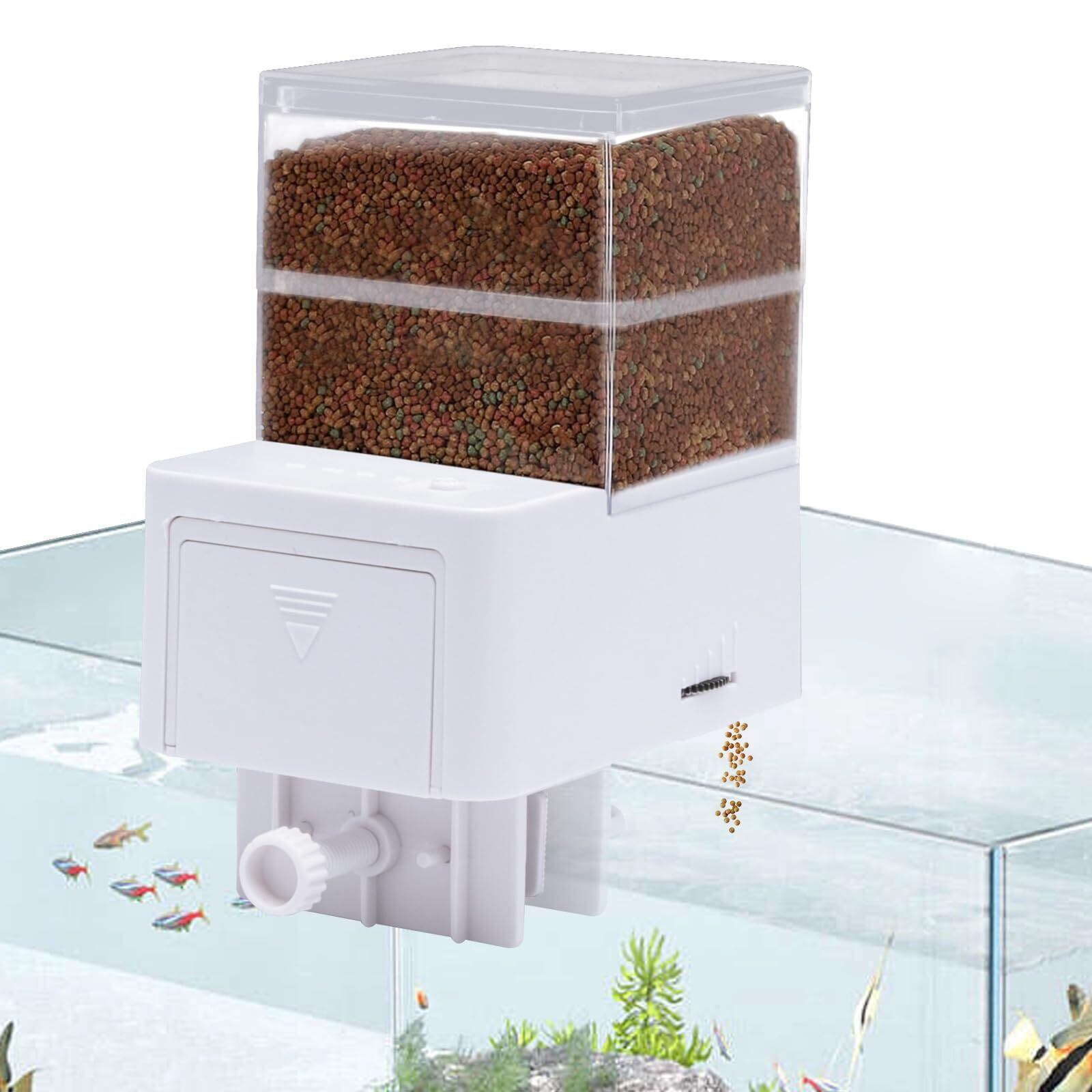 HUIZHOU 魚自動給餌器 500ml大容量 自動給餌器 餌やり器 定時 時間設定 給餌量調整可能 密閉式防湿設計 静音 オートフィーダー 多段階&多回転数 自由に飼料庫を高くすることができる 小魚の 水槽や小魚の飼育に最適