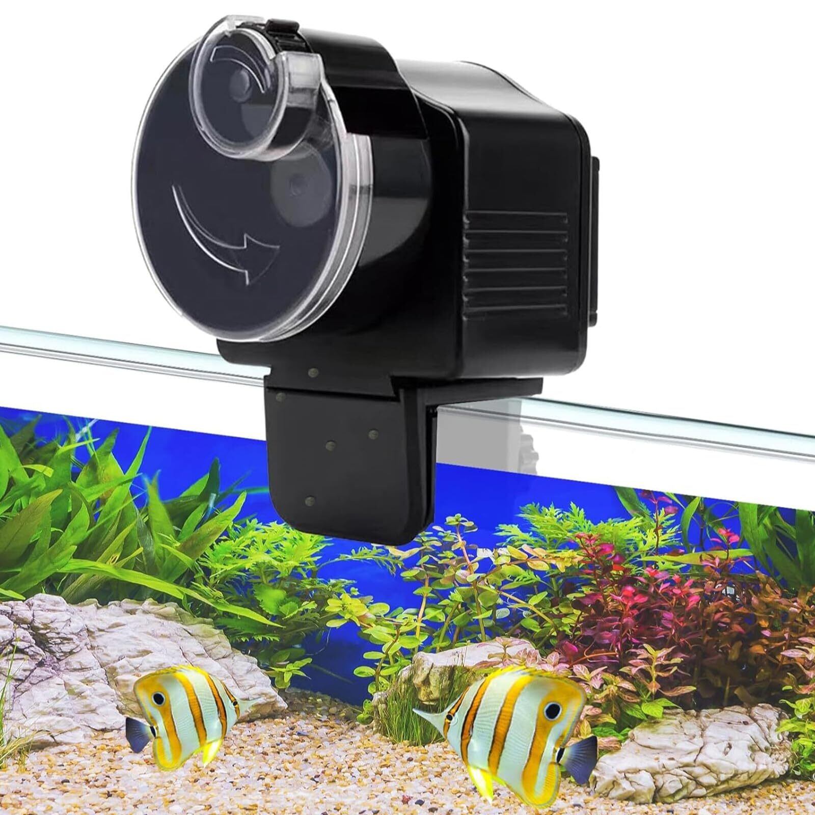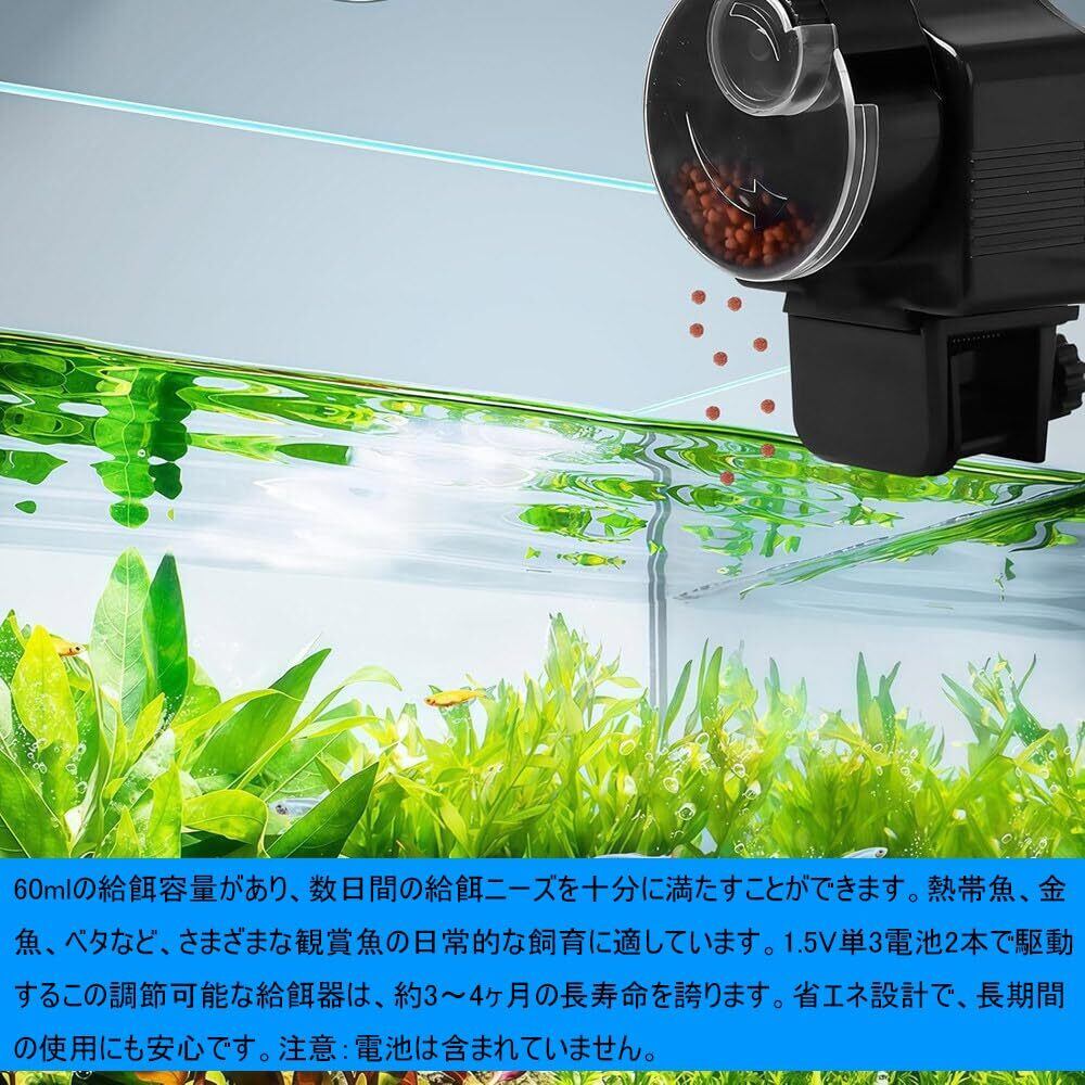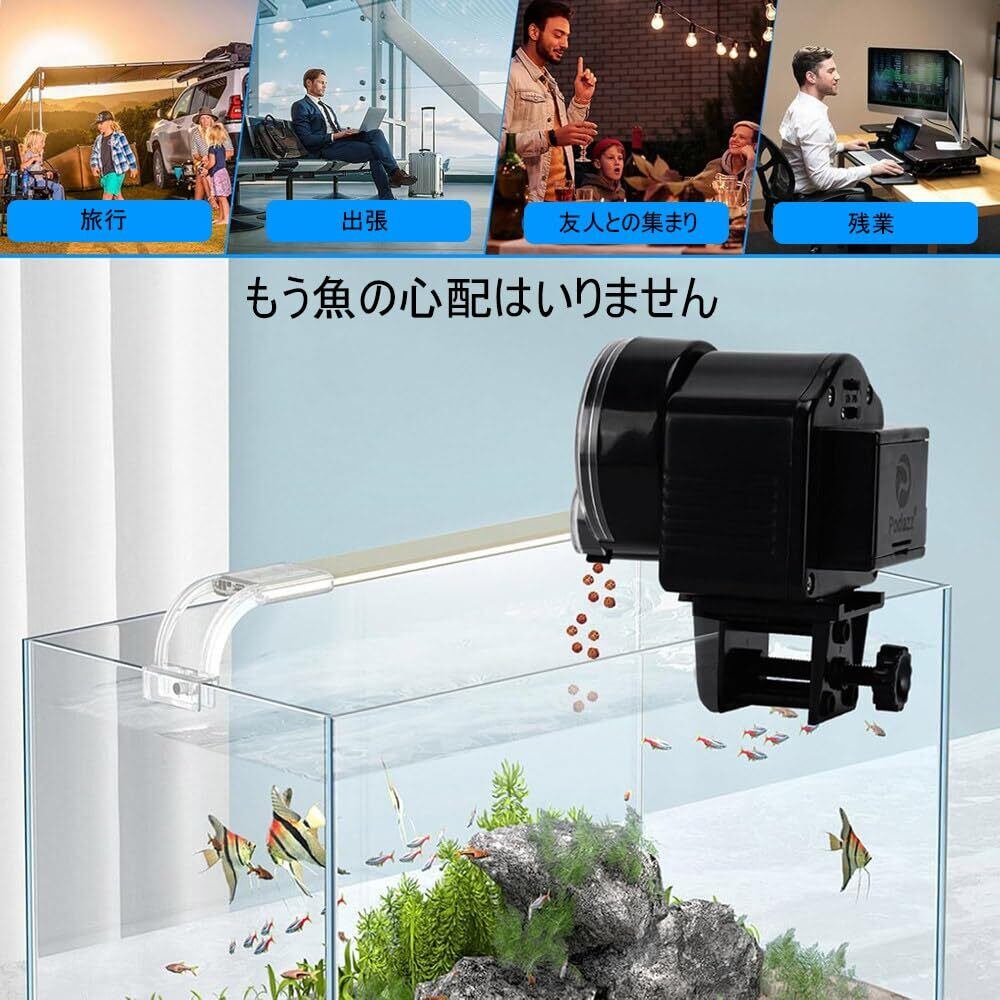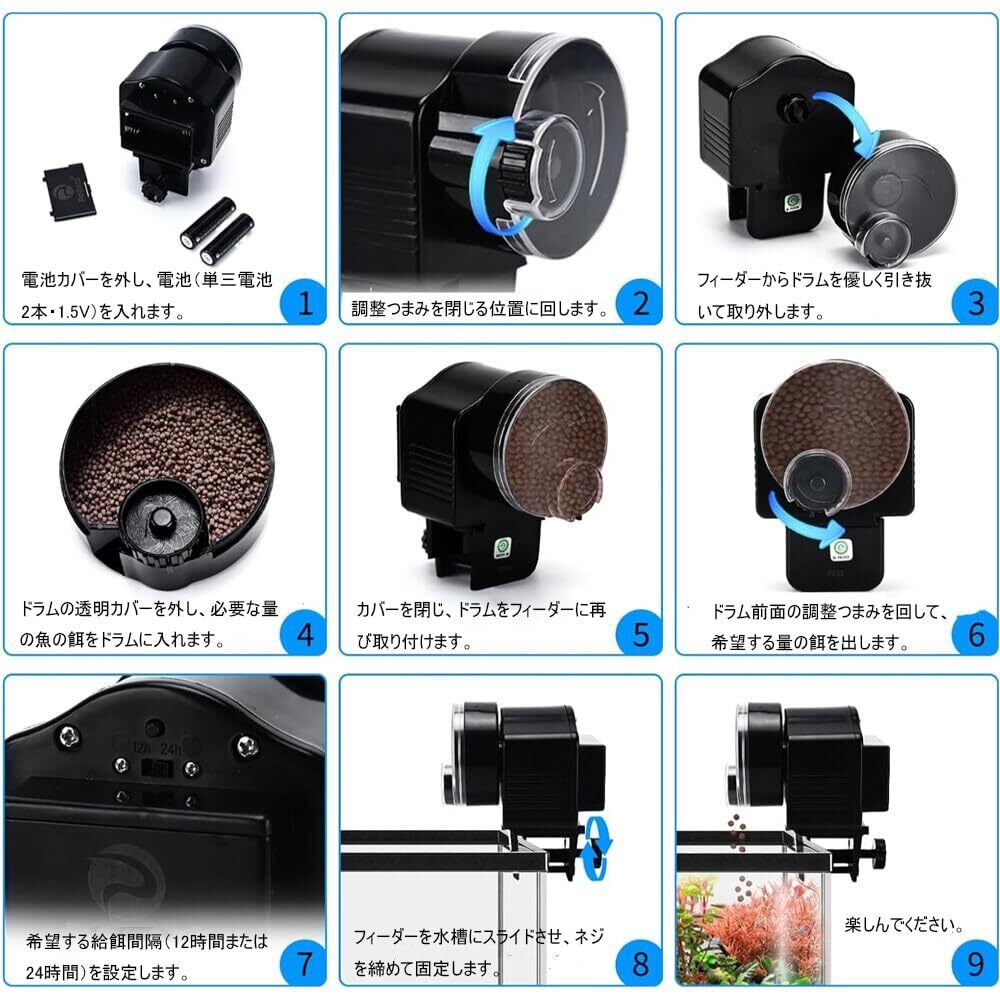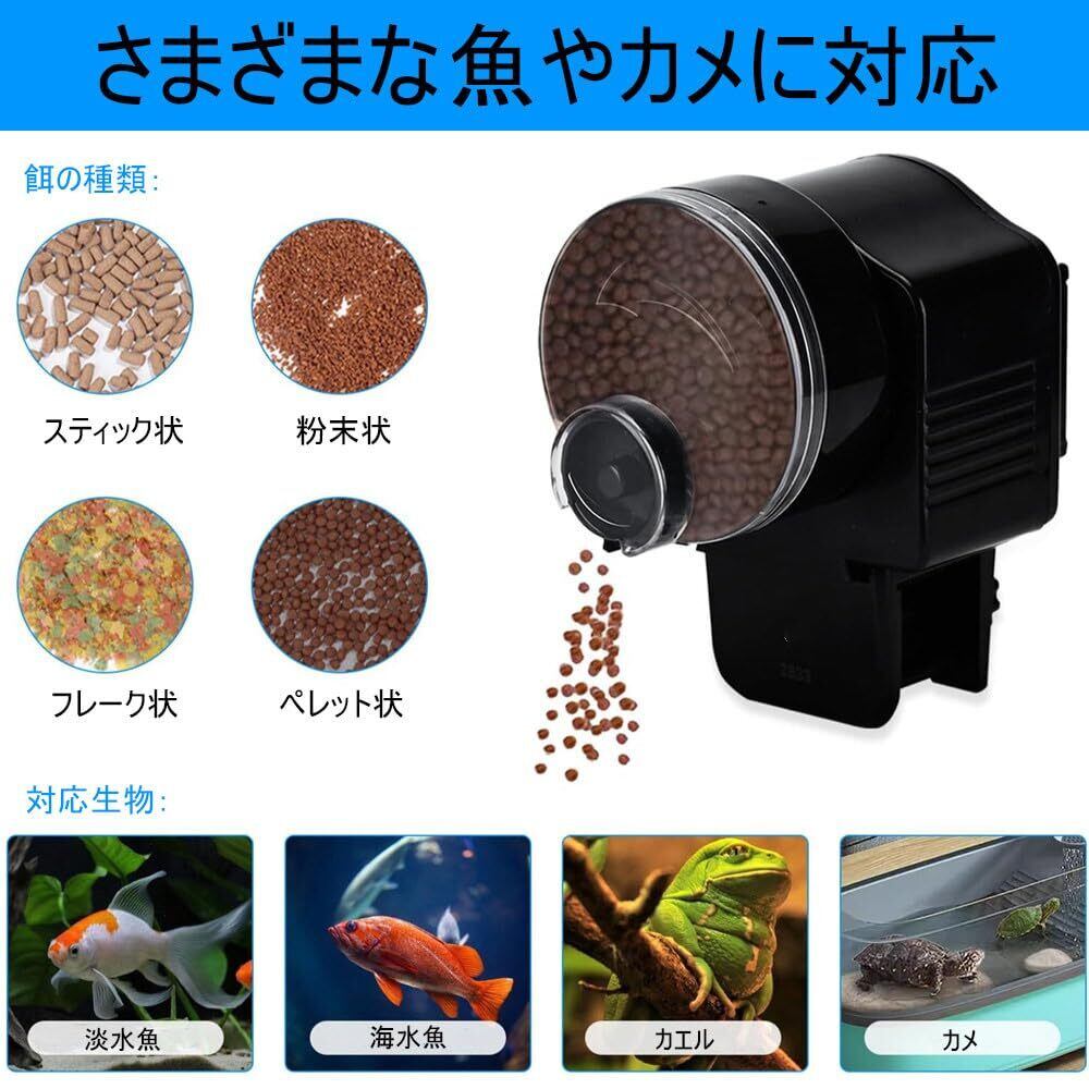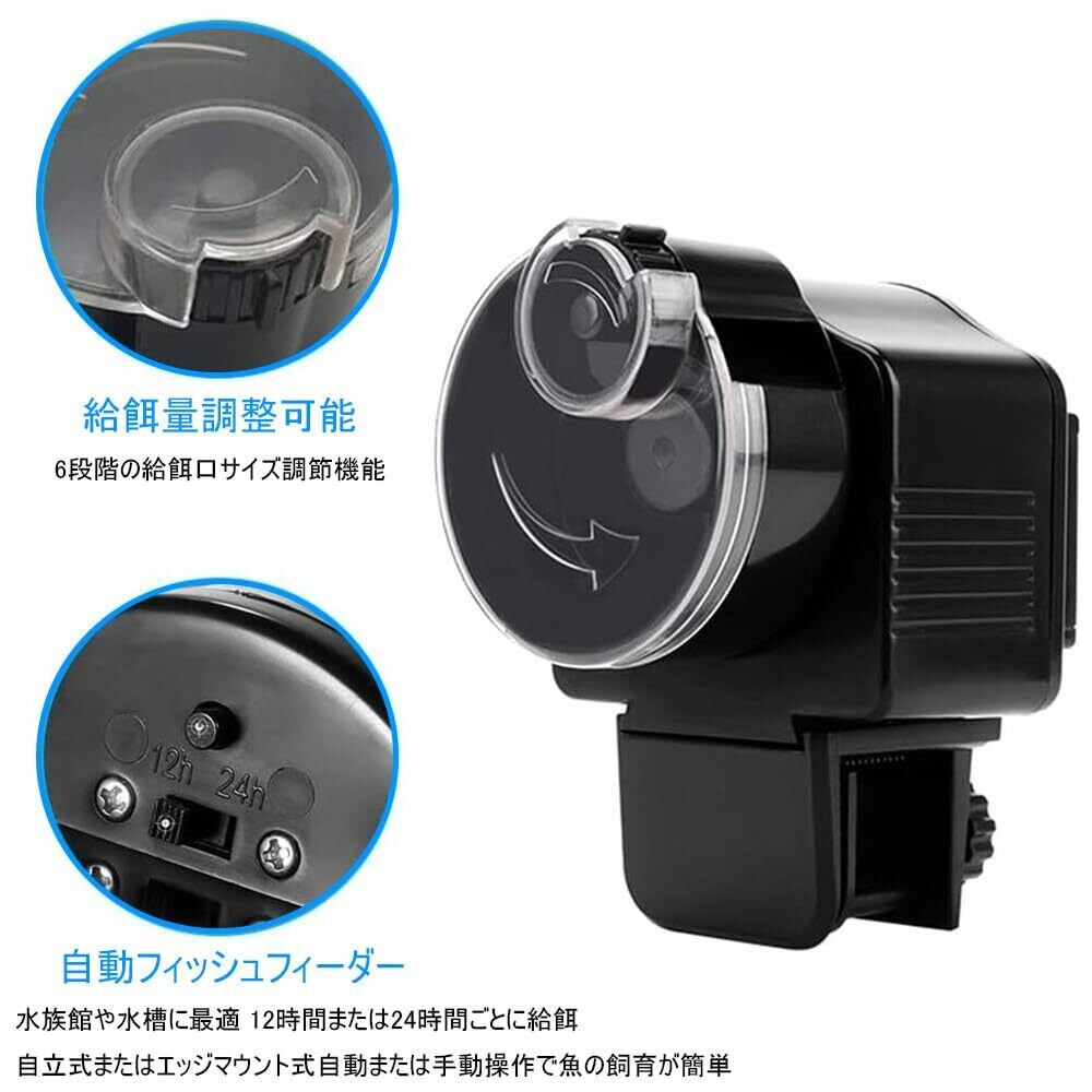 自動魚用給餌器 水槽用 オートフィーダー 魚餌やり機 防湿 餌機 給餌量調整可能 12時間/24時間タイマー 小型 静音 メダカ 熱帯魚 亀 金魚対応