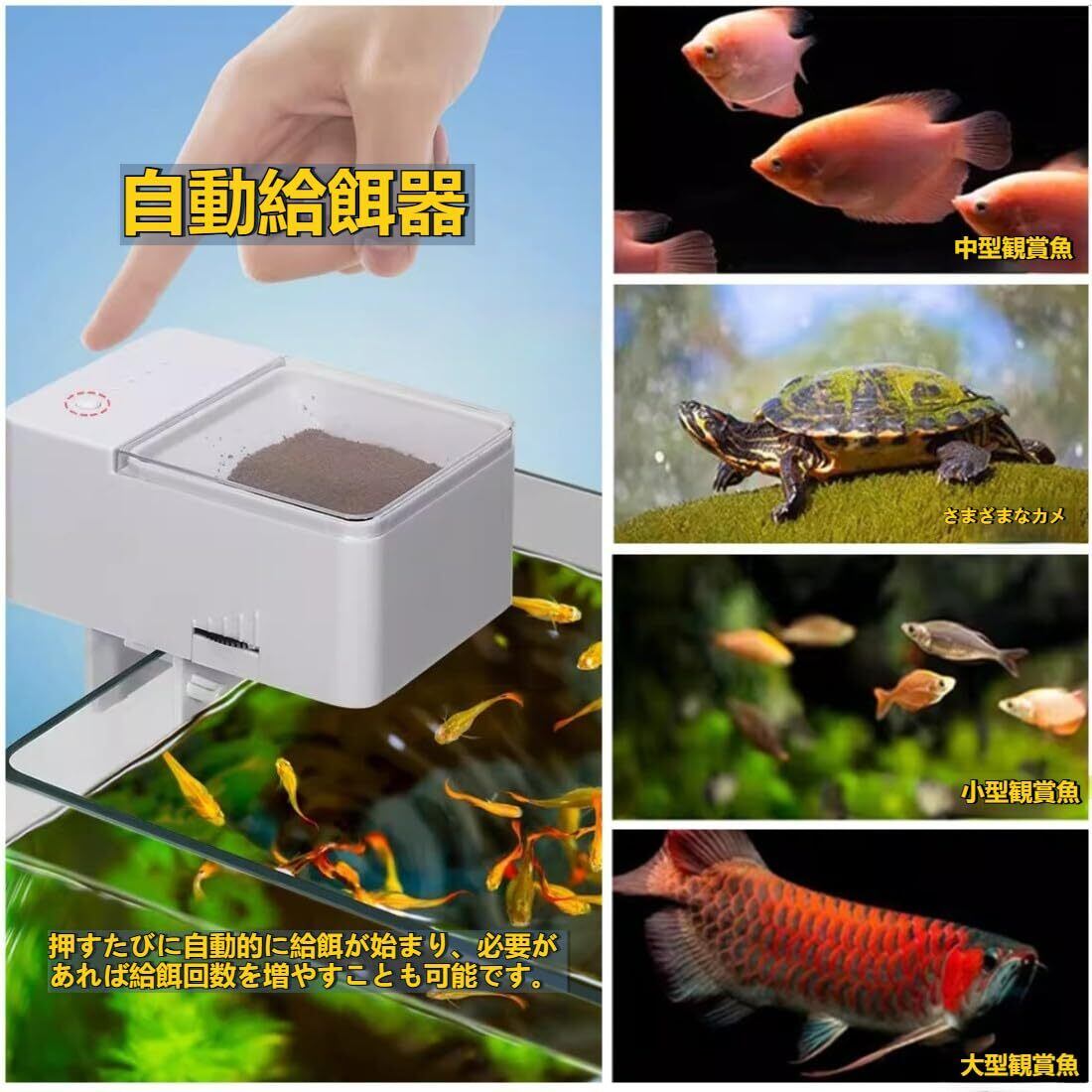手動で餌を与える時間がない方や、魚の飼育初心者でも簡単に使え、手間を省いて管理できます。