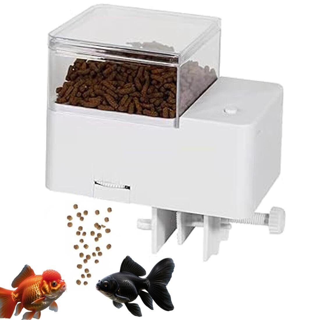 自動給餌器 魚 自動 魚用 オート フィーダー 定時 餌やり器 タイマー設定可能 給餌量調整可能 防湿設計 密閉式防湿設計 静音 静音 熱帯魚 金魚 亀 水槽や小魚の飼育に最適 水槽用 (容量 300ml、約 150g の餌)